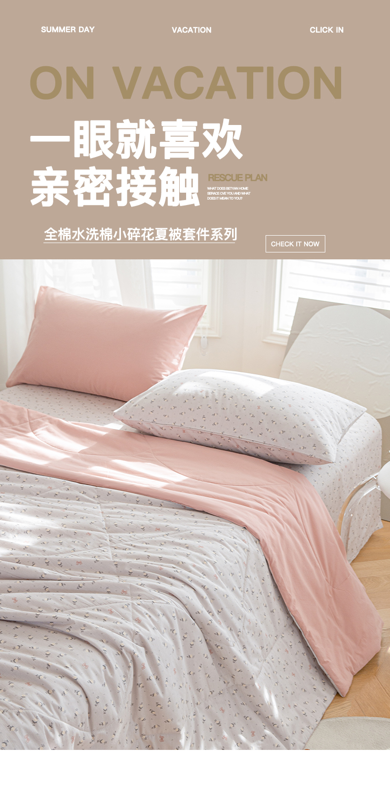 • 91家纺网 家纺一手货源 找家纺 绫韵家纺 2025夏季全棉水洗棉混搭小碎花田园风夏被纯棉空调被套件系列 沐春风