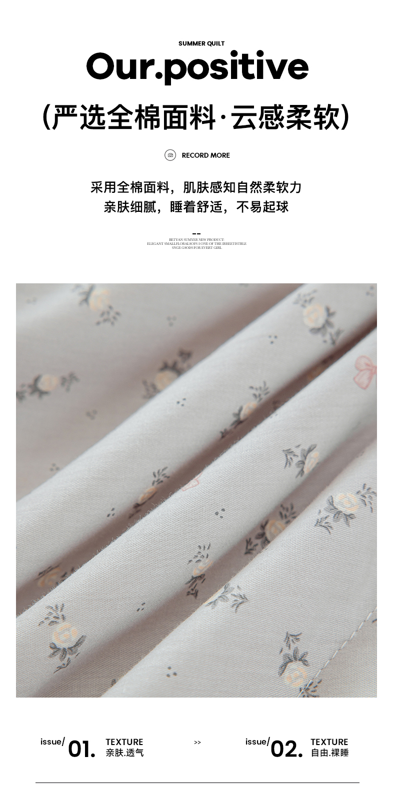 当前位置: 91家纺网 > 商品网购 > 被子 > 夏被 > 绫韵家纺 2025夏季全棉水洗棉混搭小碎花田园风夏被纯棉空调被套件系列 沐春风