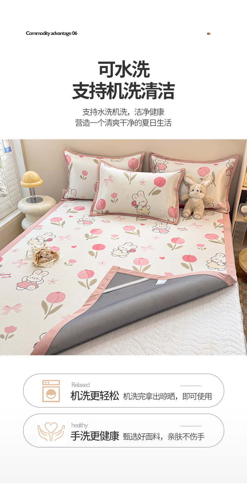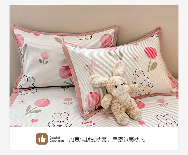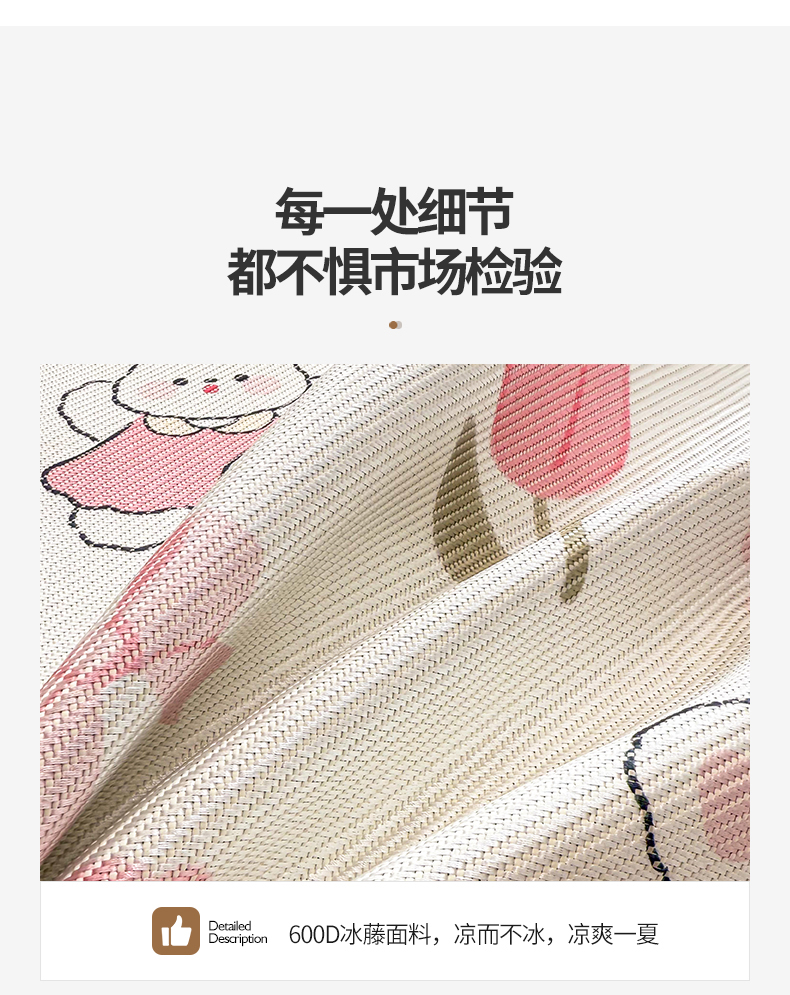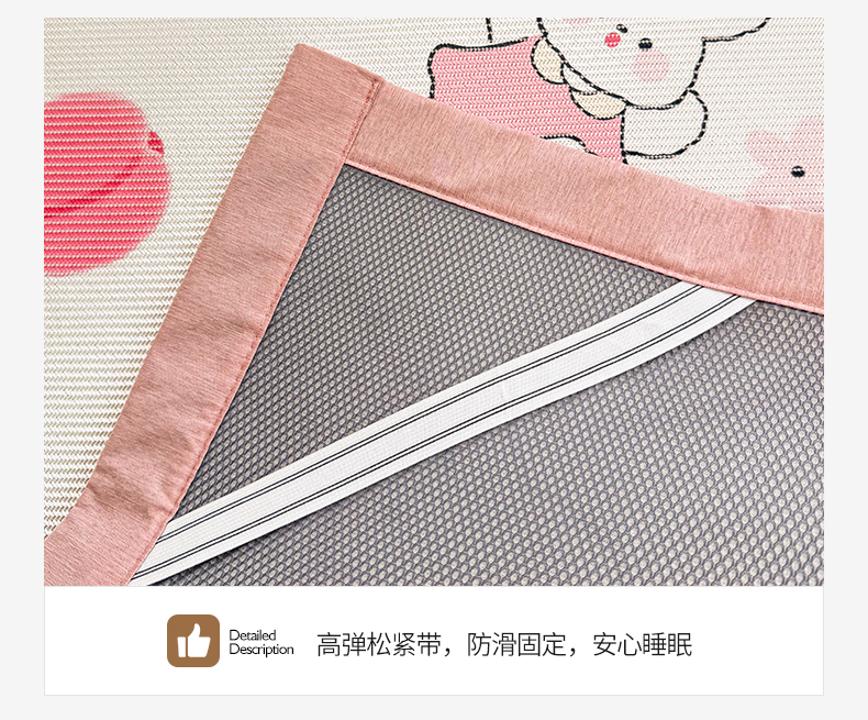 商品名称:典曼家纺 2025新款600D数码印花冰藤席席子凉席-床笠款 花朵粉兔-床笠款