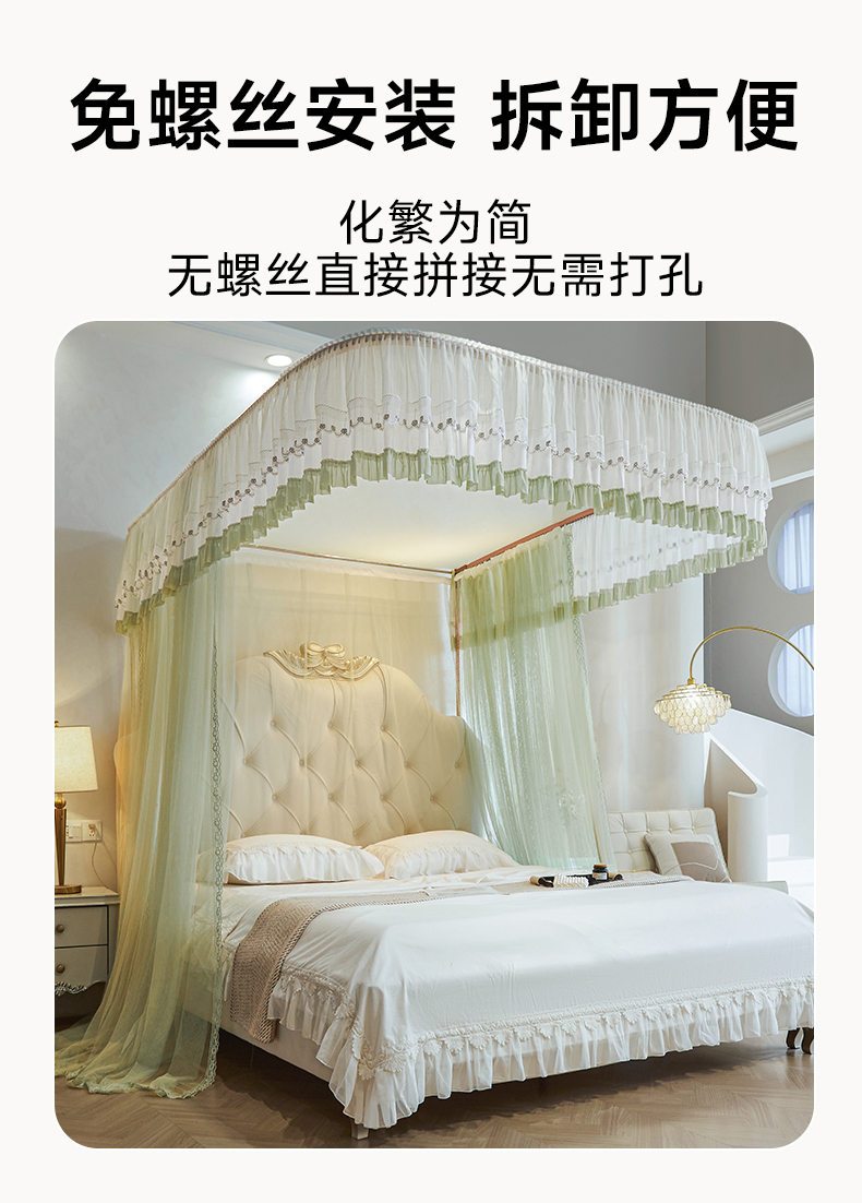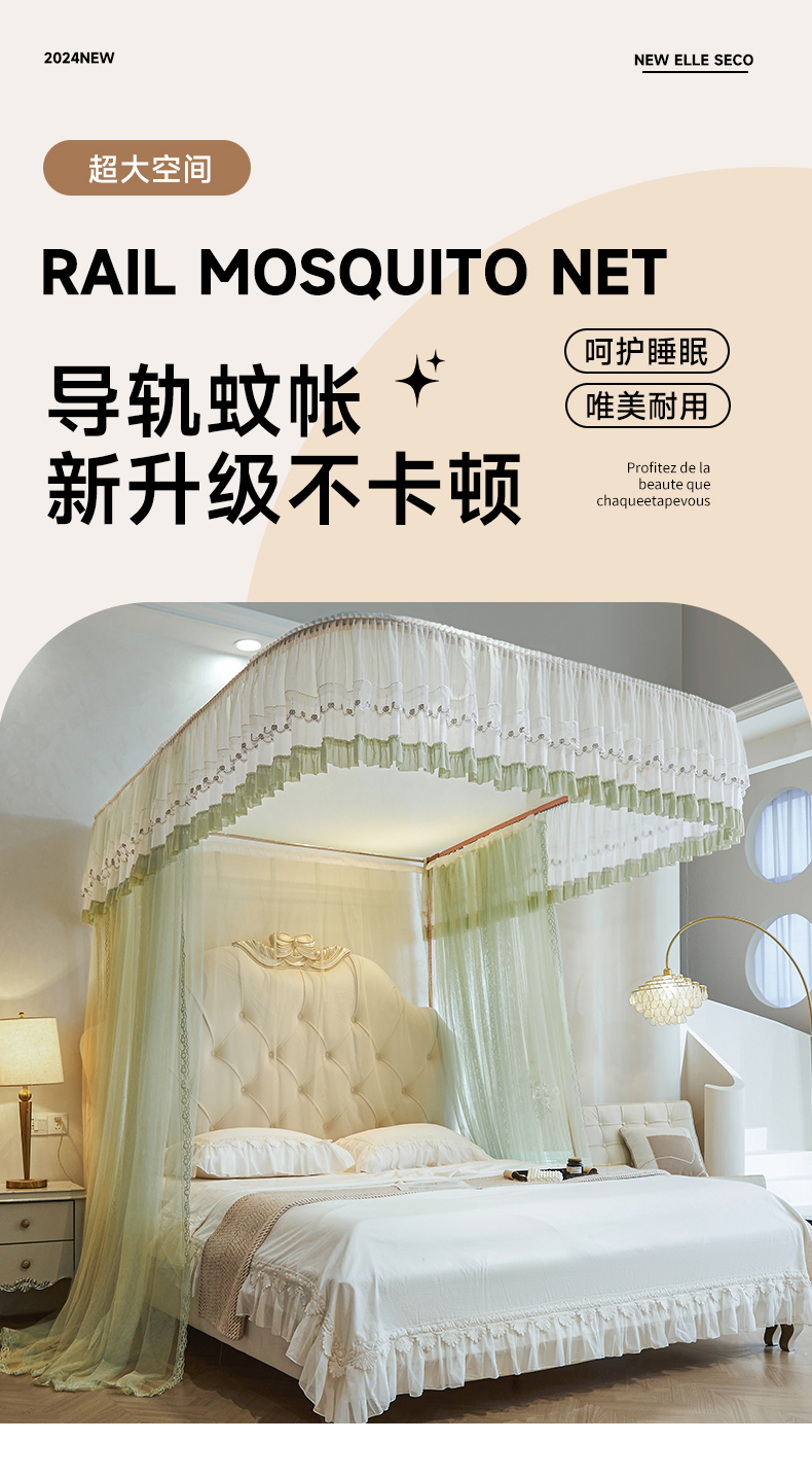 商品名称:梦尔佳蚊帐 2025新款导轨蚊帐(855型号)双层吕合金弯头带风扇杆 沫茶油绿-单层