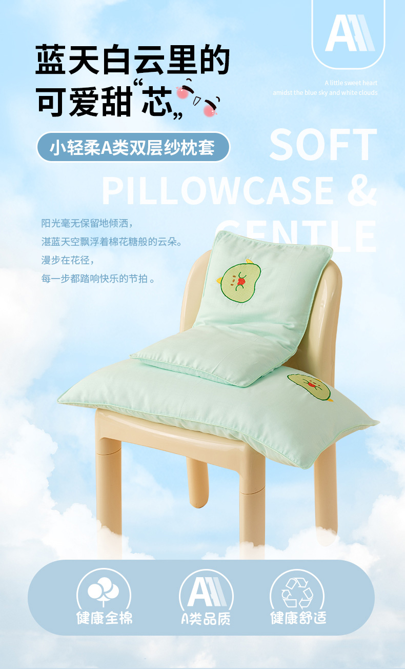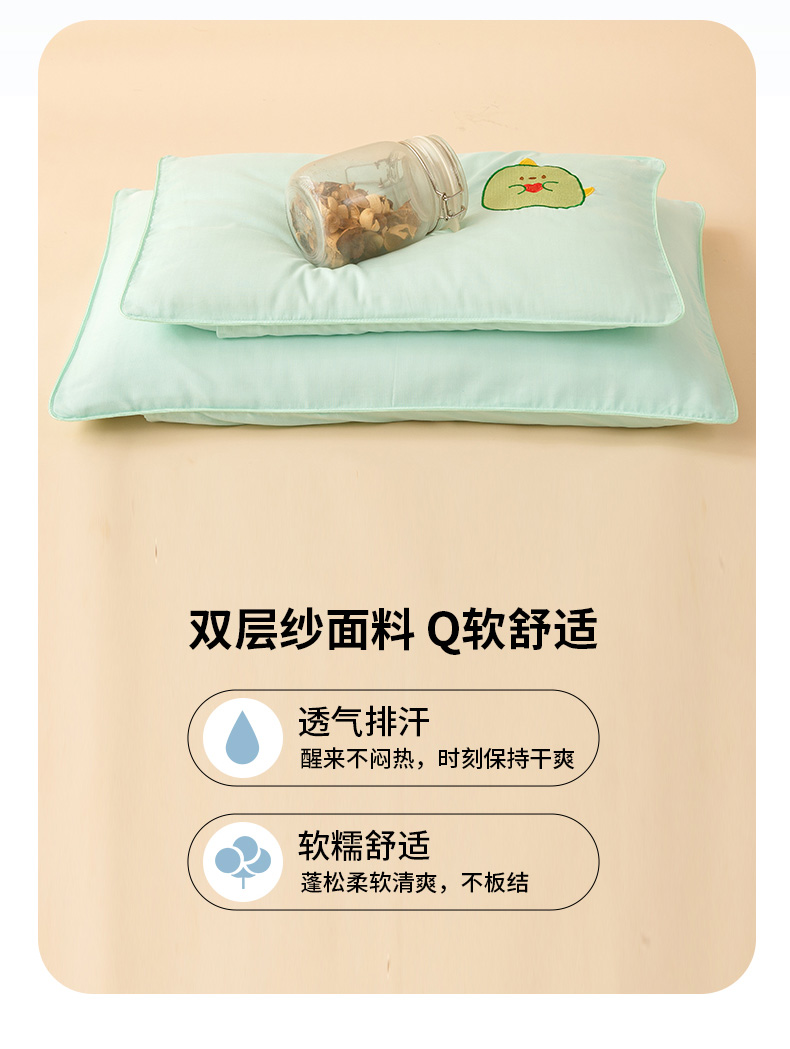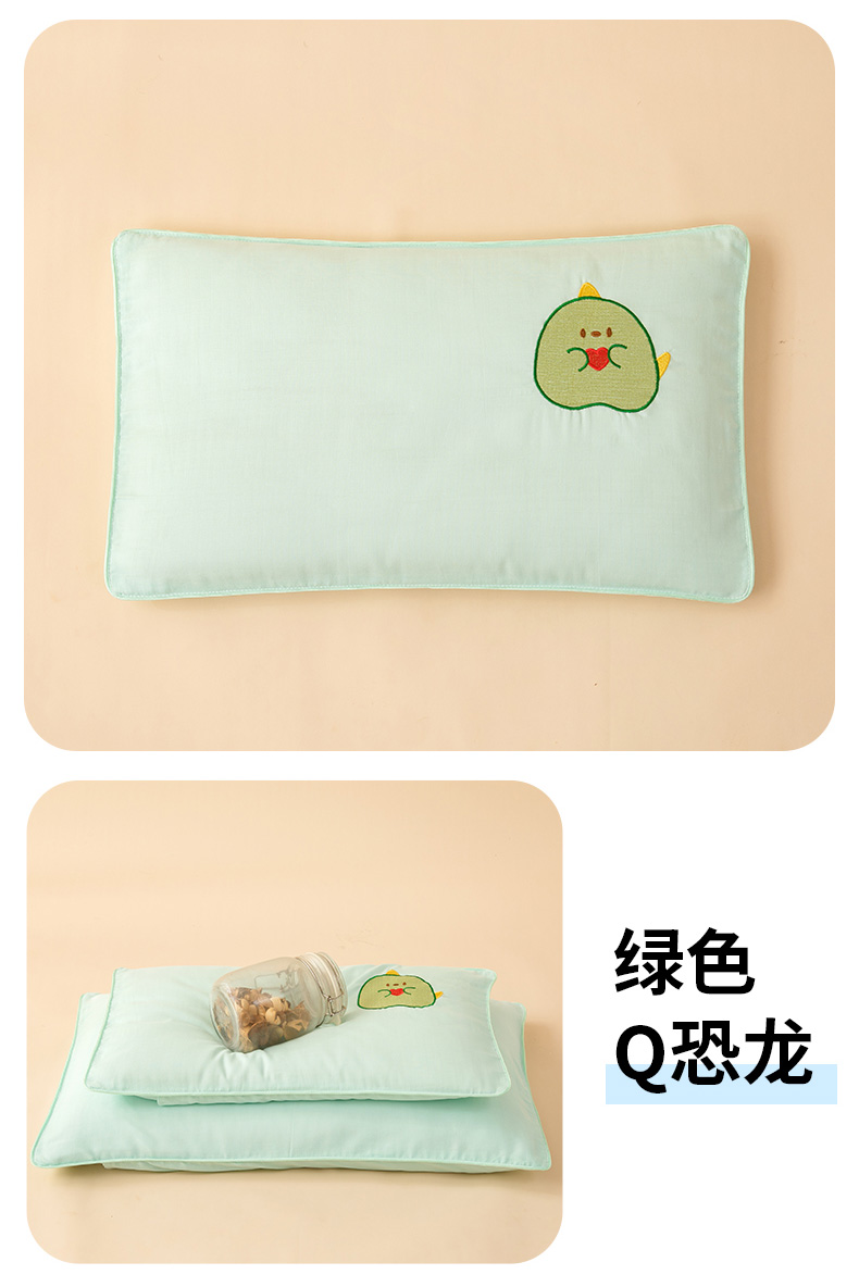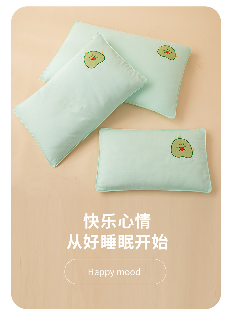 商品名称:喜多兔2025新款小轻柔纯棉双层纱枕套枕头 绿色Q恐龙