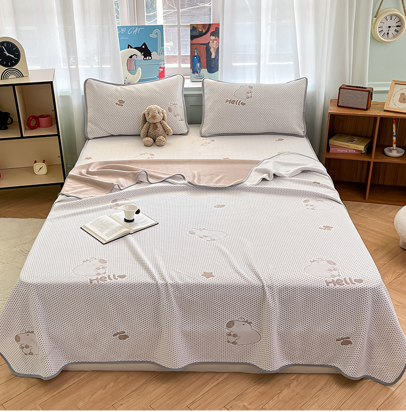 绘萱家居 2025爆款冰凉豆豆凉席夏被四件套三件套床笠款冰丝软席子 卡皮巴拉-咖