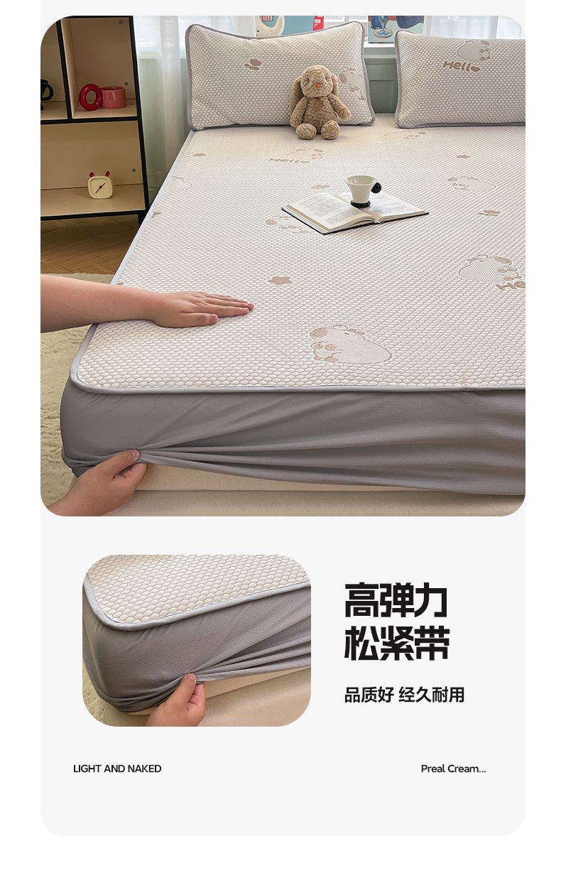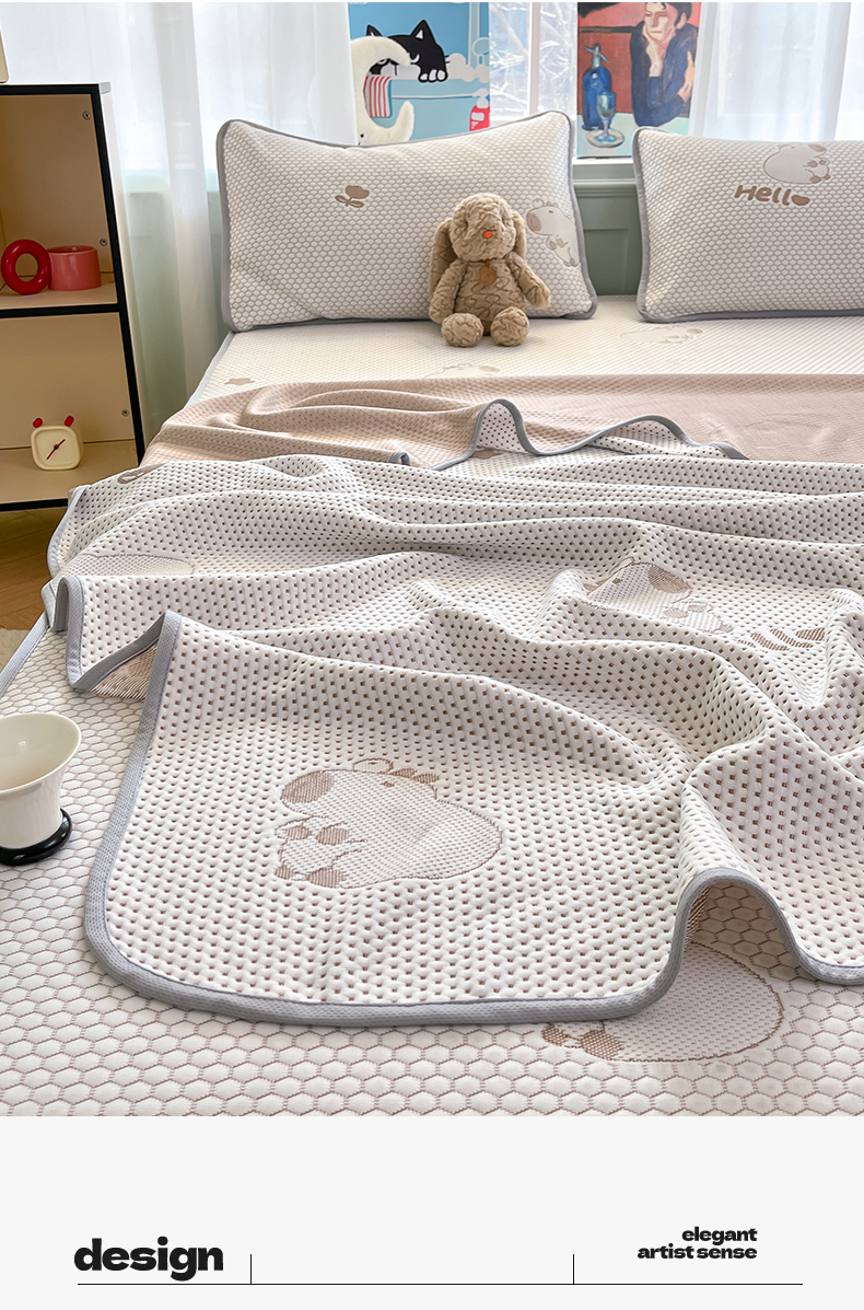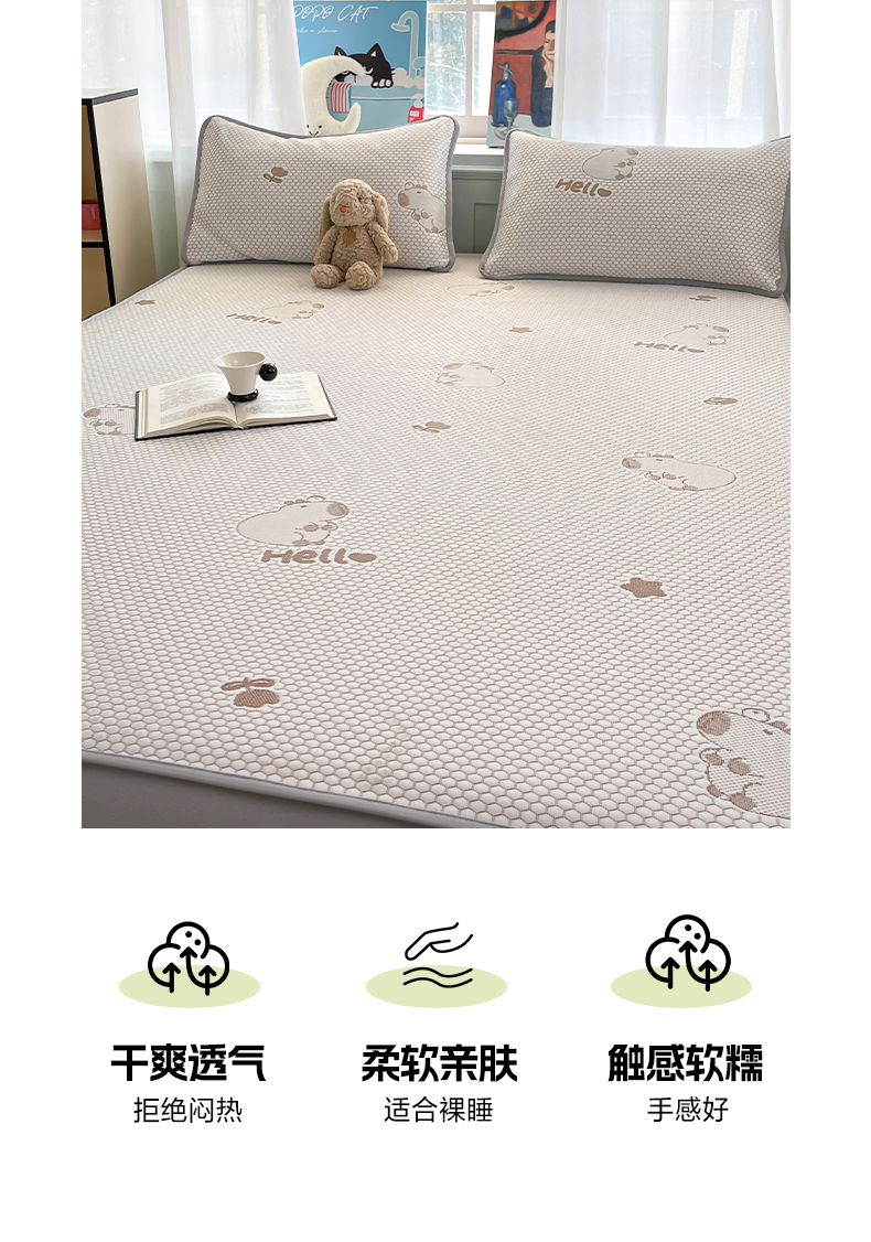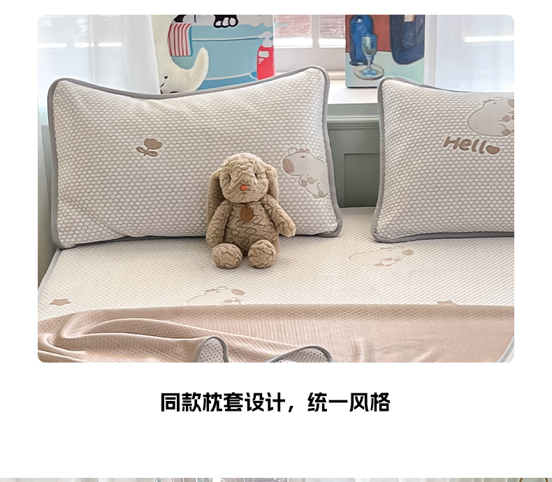 商品名称:绘萱家居 2025爆款冰凉豆豆凉席夏被四件套三件套床笠款冰丝软席子 卡皮巴拉-咖