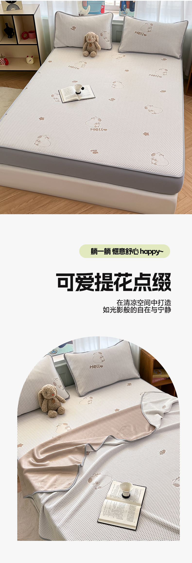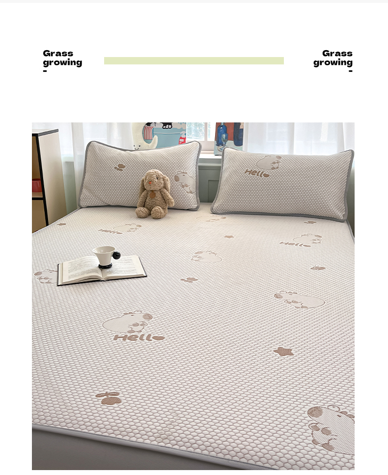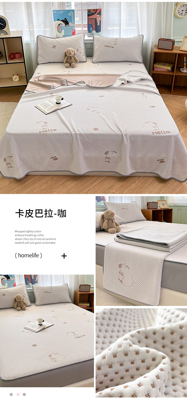 商品名称:绘萱家居 2025爆款冰凉豆豆凉席夏被四件套三件套床笠款冰丝软席子 卡皮巴拉-咖
