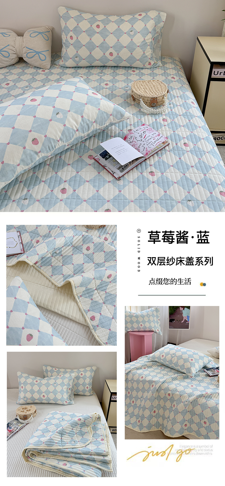 (总)TT.one 塔塔家居 2025新款全棉双层纱贝壳边夏被系列,半夏,草莓酱·蓝,晨露,春和日丽,春日派对,花序,茉香,南岛日记,趣味豆豆,睡睡熊,素予,小樱桃