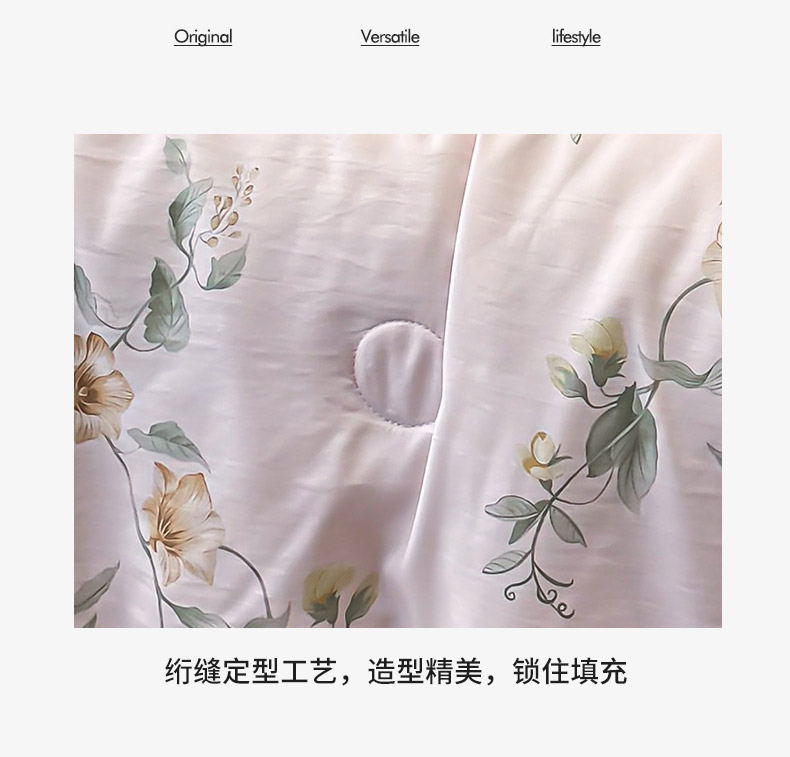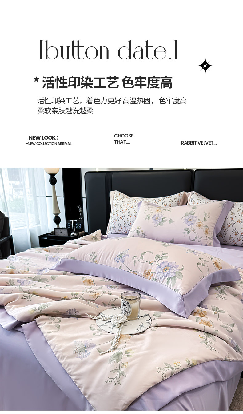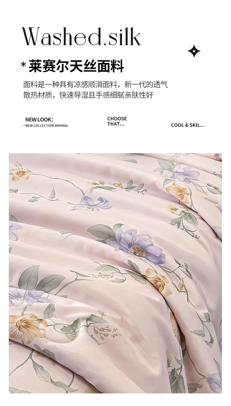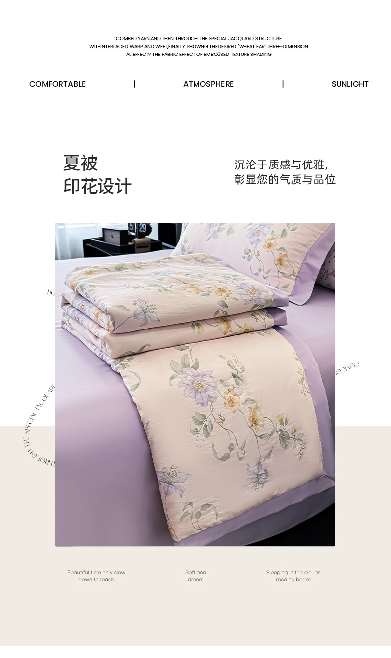 商品名称:合欢(原天一阁)2025新款莱赛尔拼角工艺款天丝夏被四件套 花梦-紫