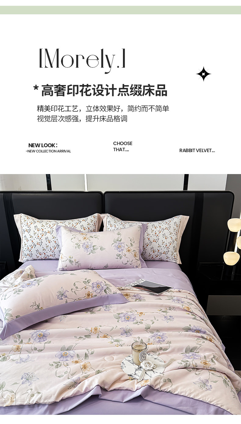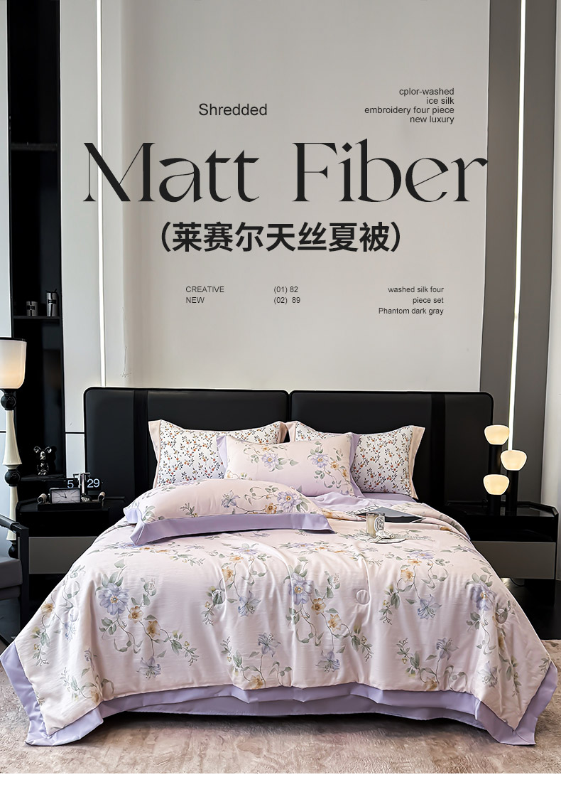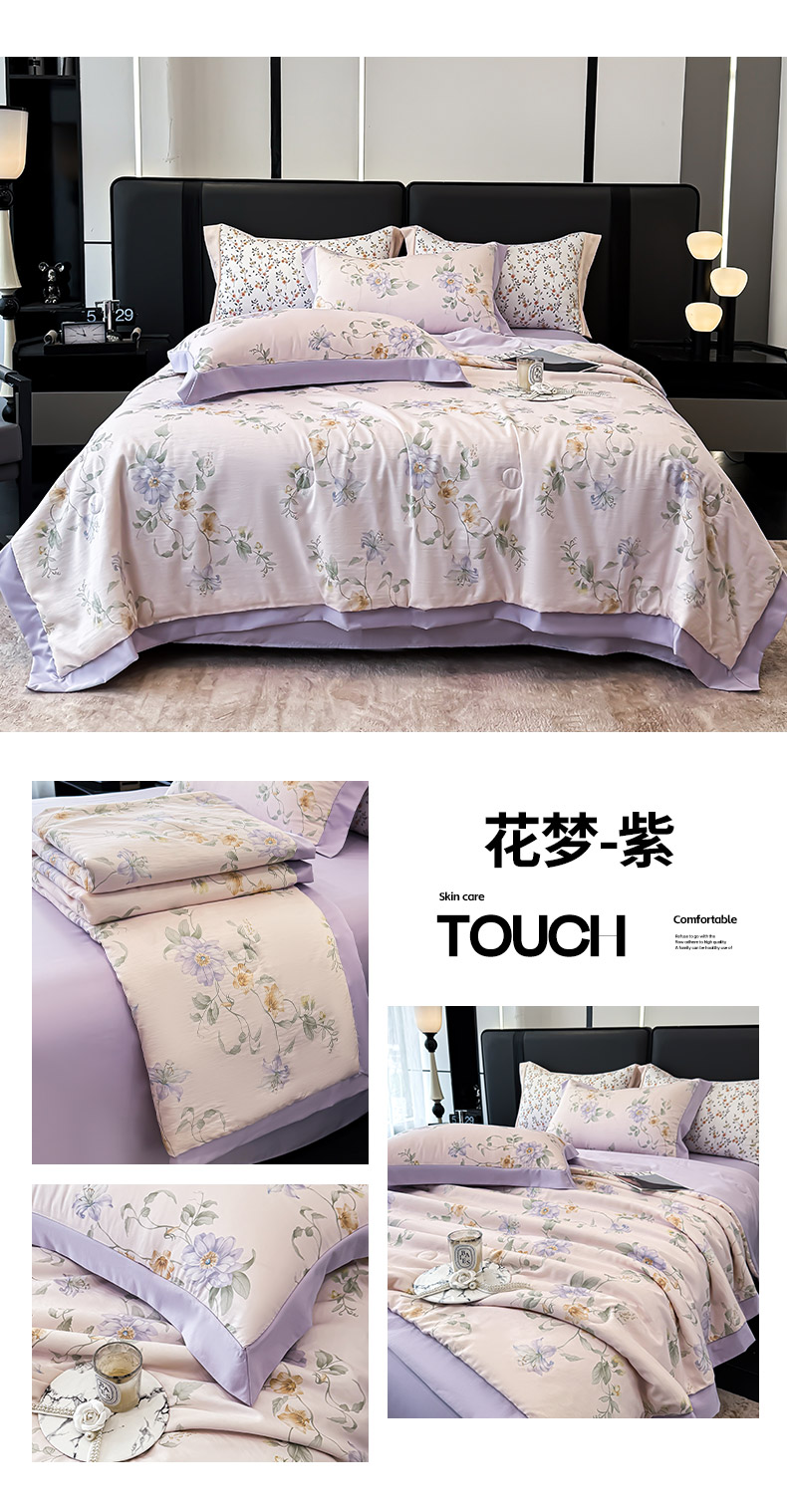合欢(原天一阁)2025新款莱赛尔拼角工艺款天丝夏被四件套 花梦-紫