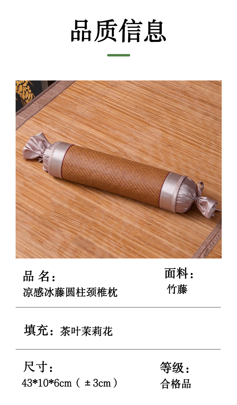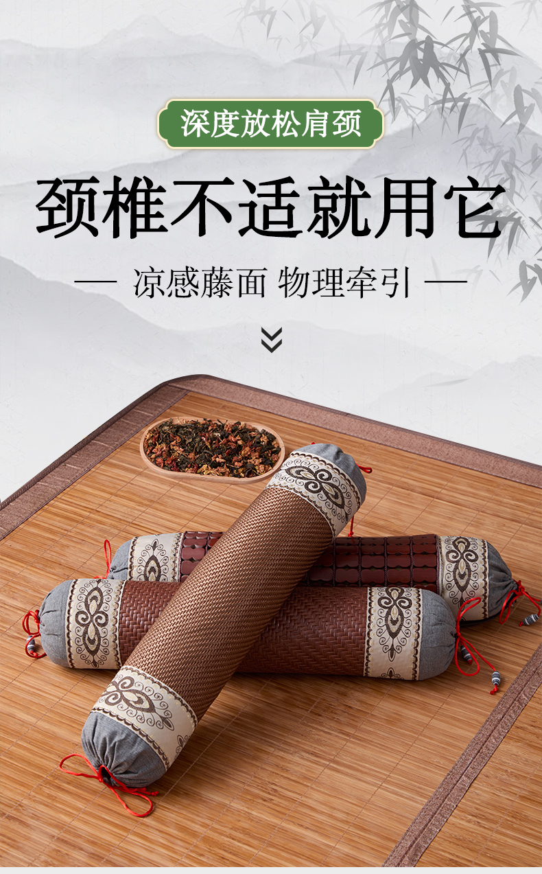 商品名称:(总)织布人 2025新款颈椎枕夏季凉感冰藤圆柱枕PE藤麻将枕反弓颈椎不适专用枕43*10*8cm