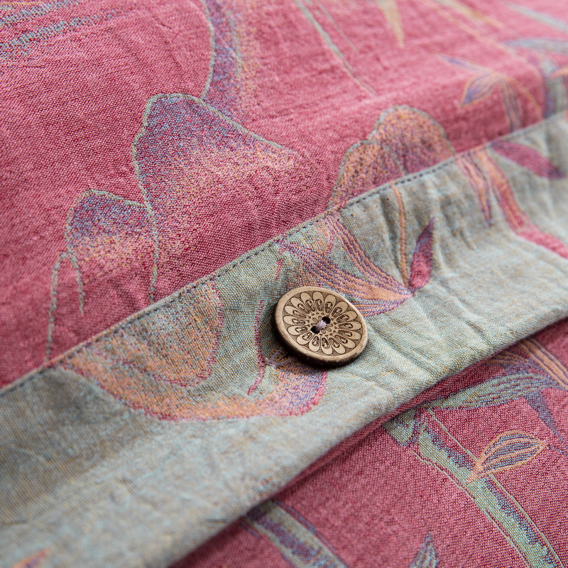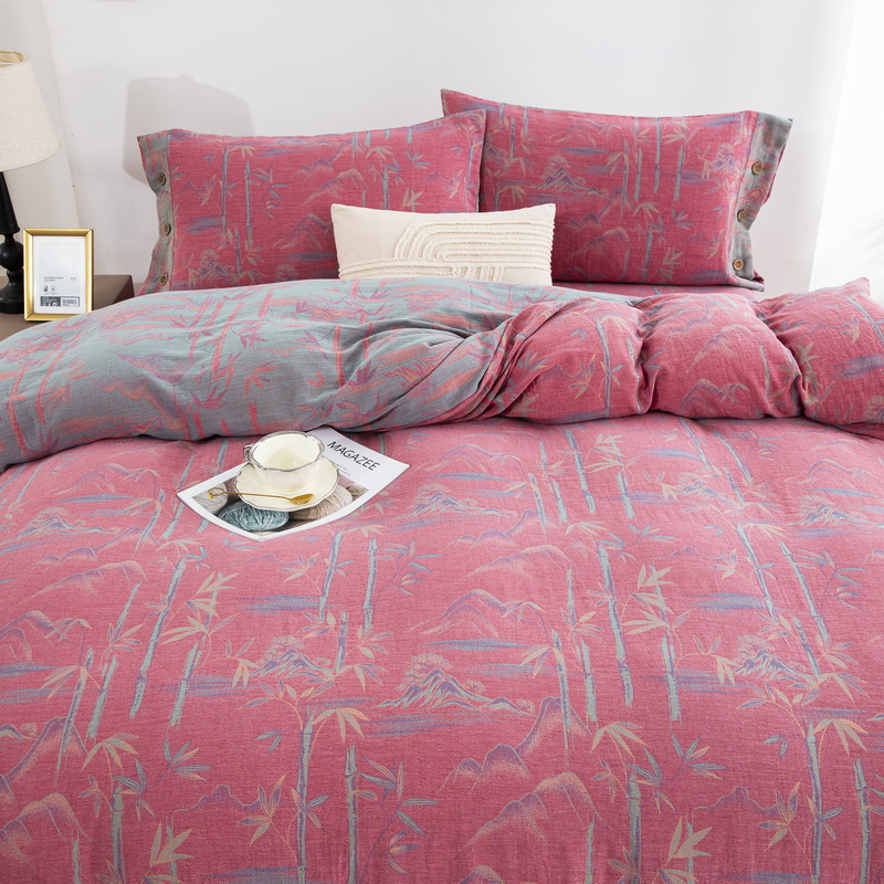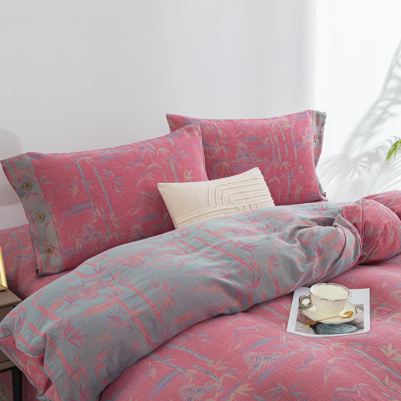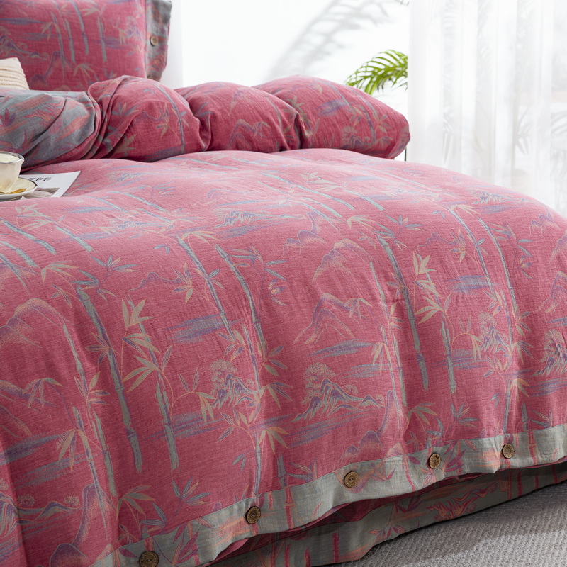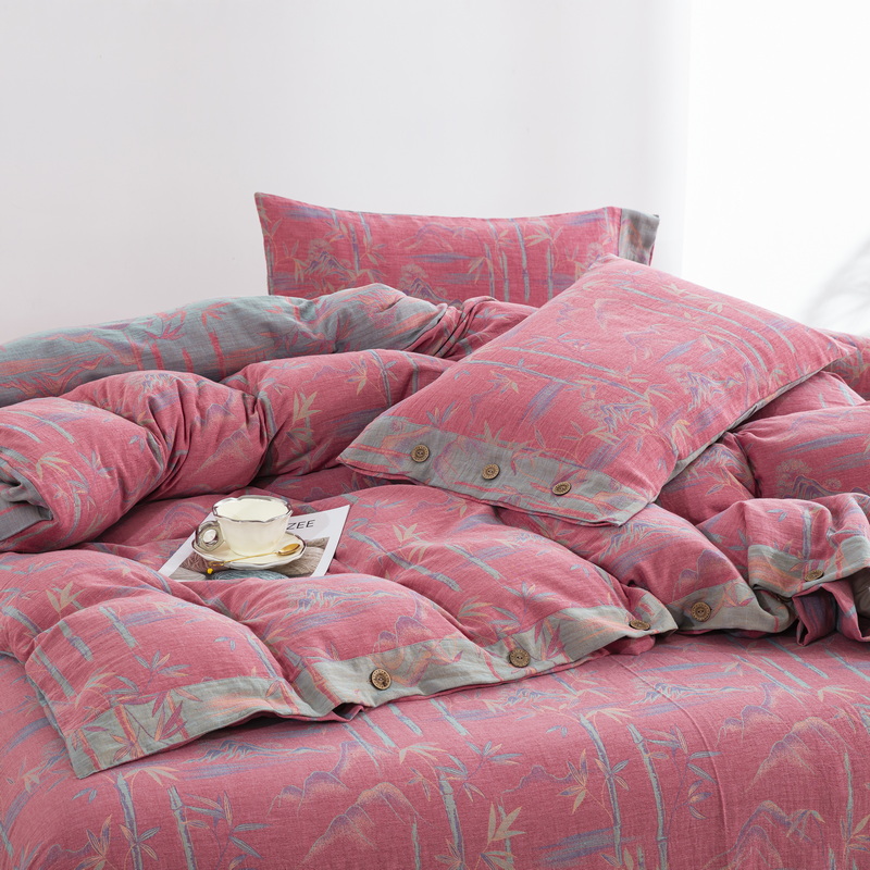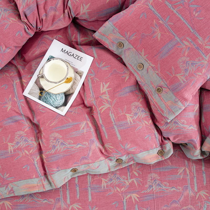商品名称:2025新款全棉色织双层纱纽扣款四件套 竹报平安-粉