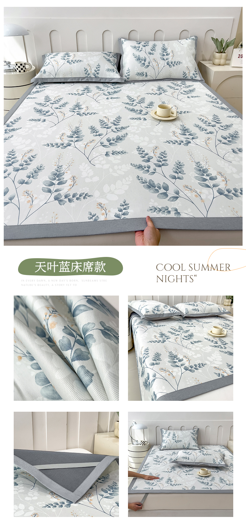 商品名称:倾慕家纺 2025年新款600D丝滑冰丝凉席-床席款 天叶蓝