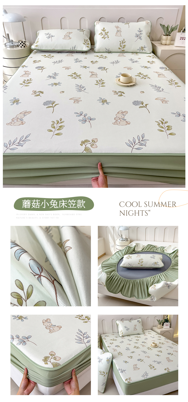 2025年新款600D丝滑冰丝凉席-床笠款 蘑菇小兔
