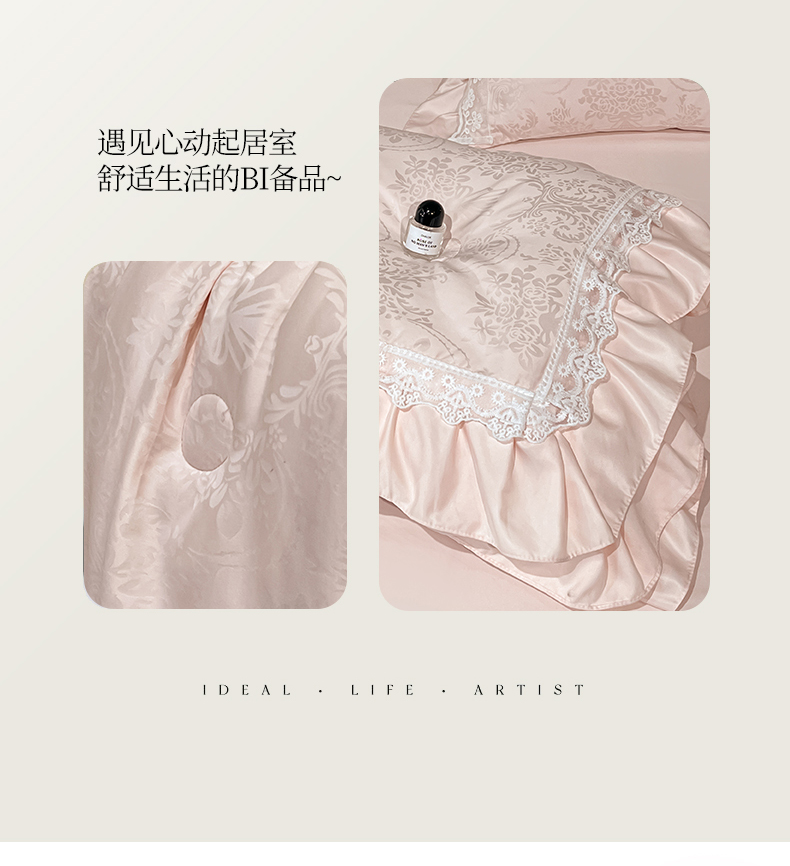 商品名称:2025新款水洗天丝提花四件套-梦洛伊 梦洛伊·公主粉