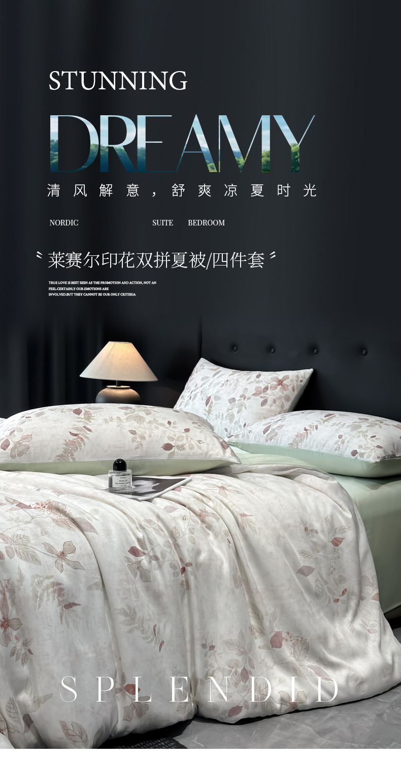 (总)慕晨 2025春夏新品莱赛尔天丝数码印花四件套莱赛尔夏被四件套天丝夏凉被直播热款,繁华-白,繁华-粉,芳馨-兰,芳馨-绿,金蕊,锦葵,兰琦,萌兔,秘境,沐瑶,琦梦,浅韵,柔兰,素锦,叶澜,雨薇,竹影,紫菱