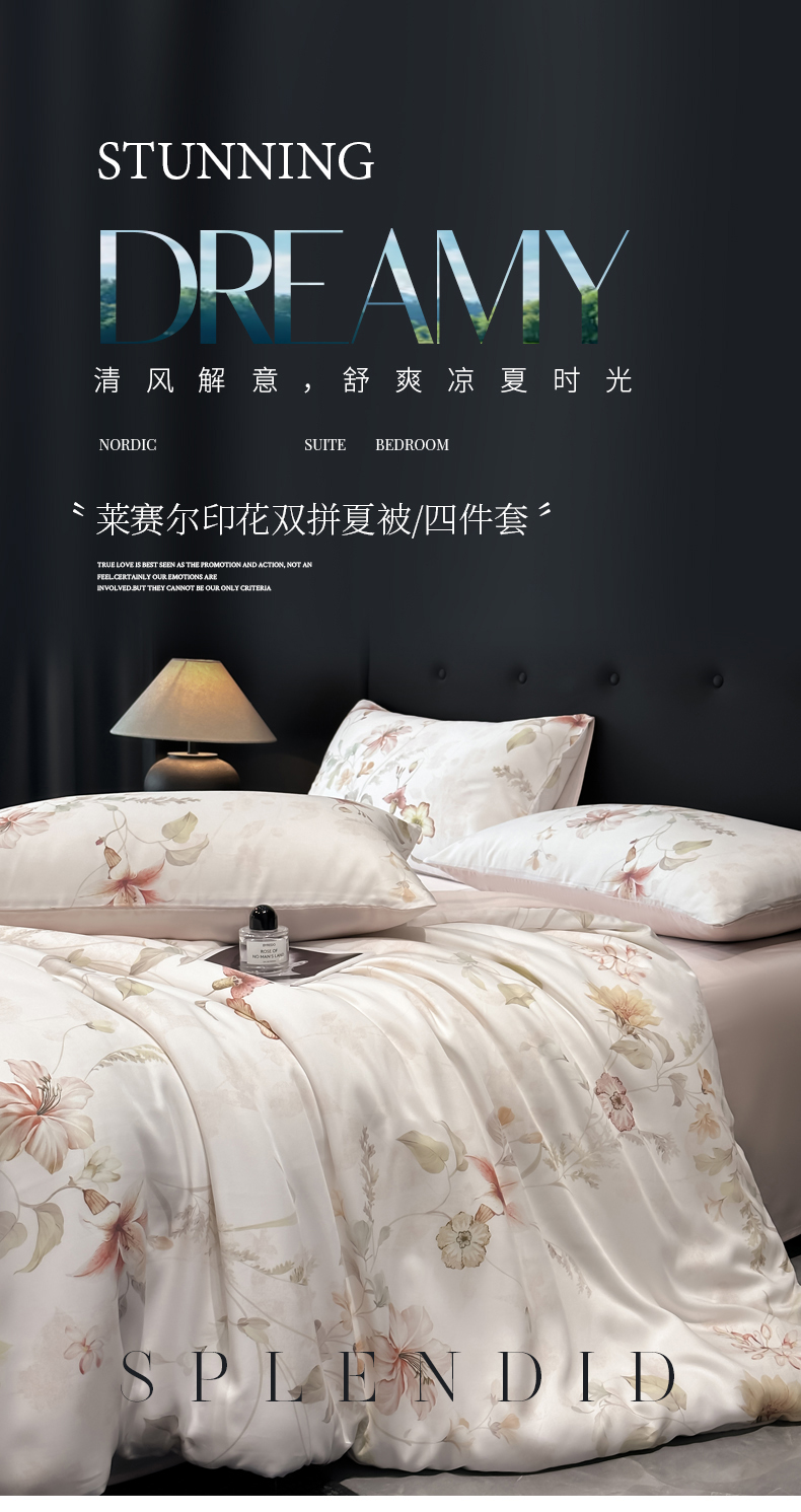 (总)慕晨 2025春夏新品莱赛尔天丝数码印花四件套莱赛尔夏被四件套天丝夏凉被直播热款,繁华-白,繁华-粉,芳馨-兰,芳馨-绿,金蕊,锦葵,兰琦,萌兔,秘境,沐瑶,琦梦,浅韵,柔兰,素锦,叶澜,雨薇,竹影,紫菱