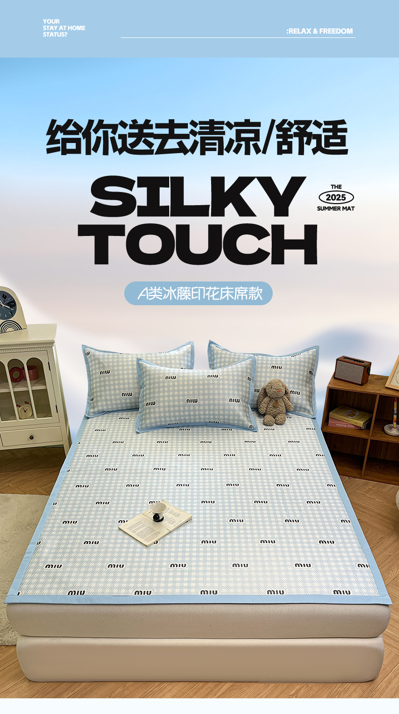 商品名称:布卢姆床垫2025新款A类数码印花冰藤席夏凉席--床席款 蓝miu