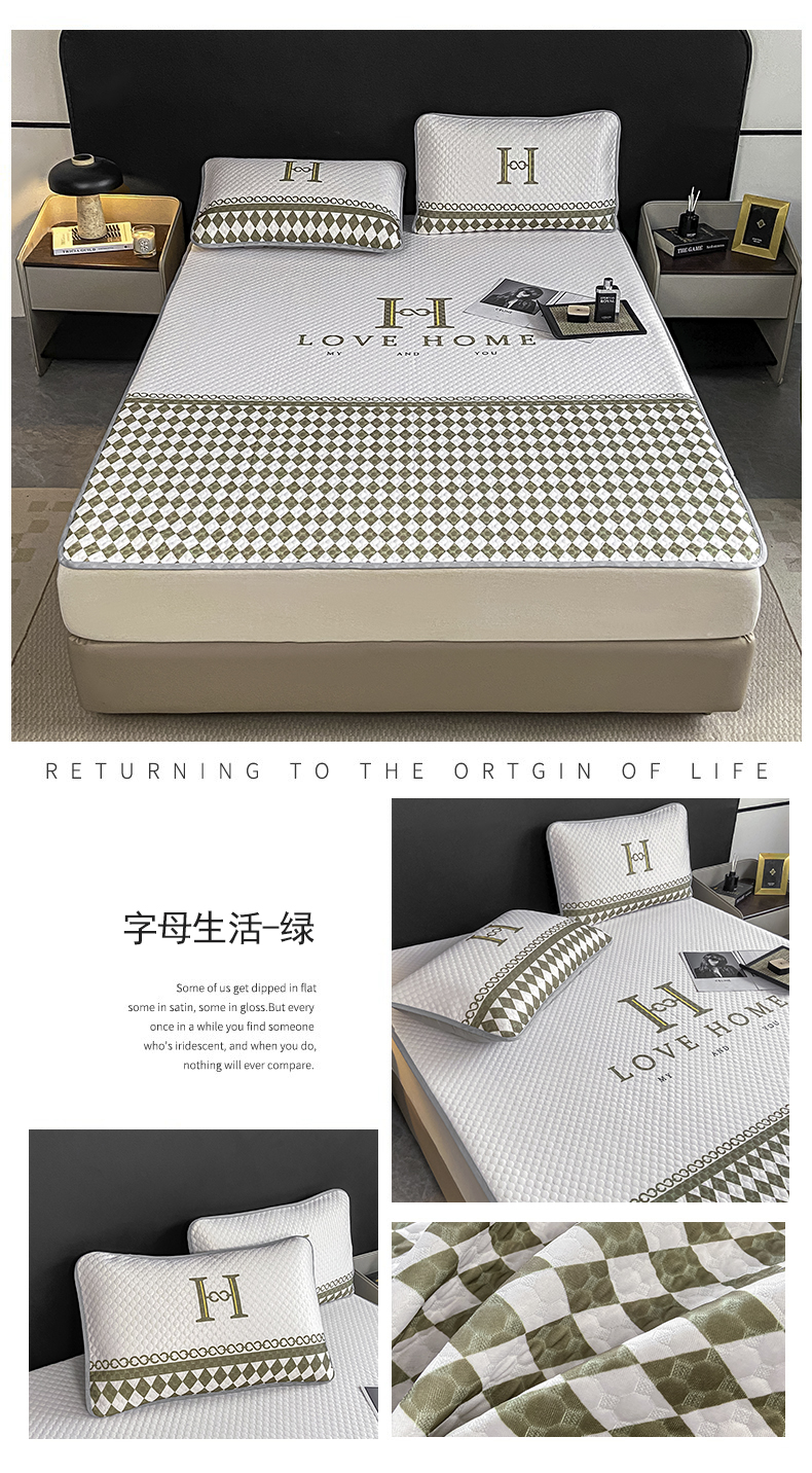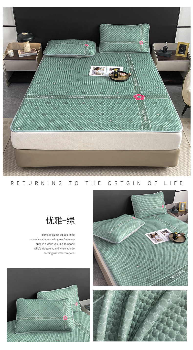 慕梵家居 2025新款大版印花冰豆豆凉席席子三件套 繁花-粉