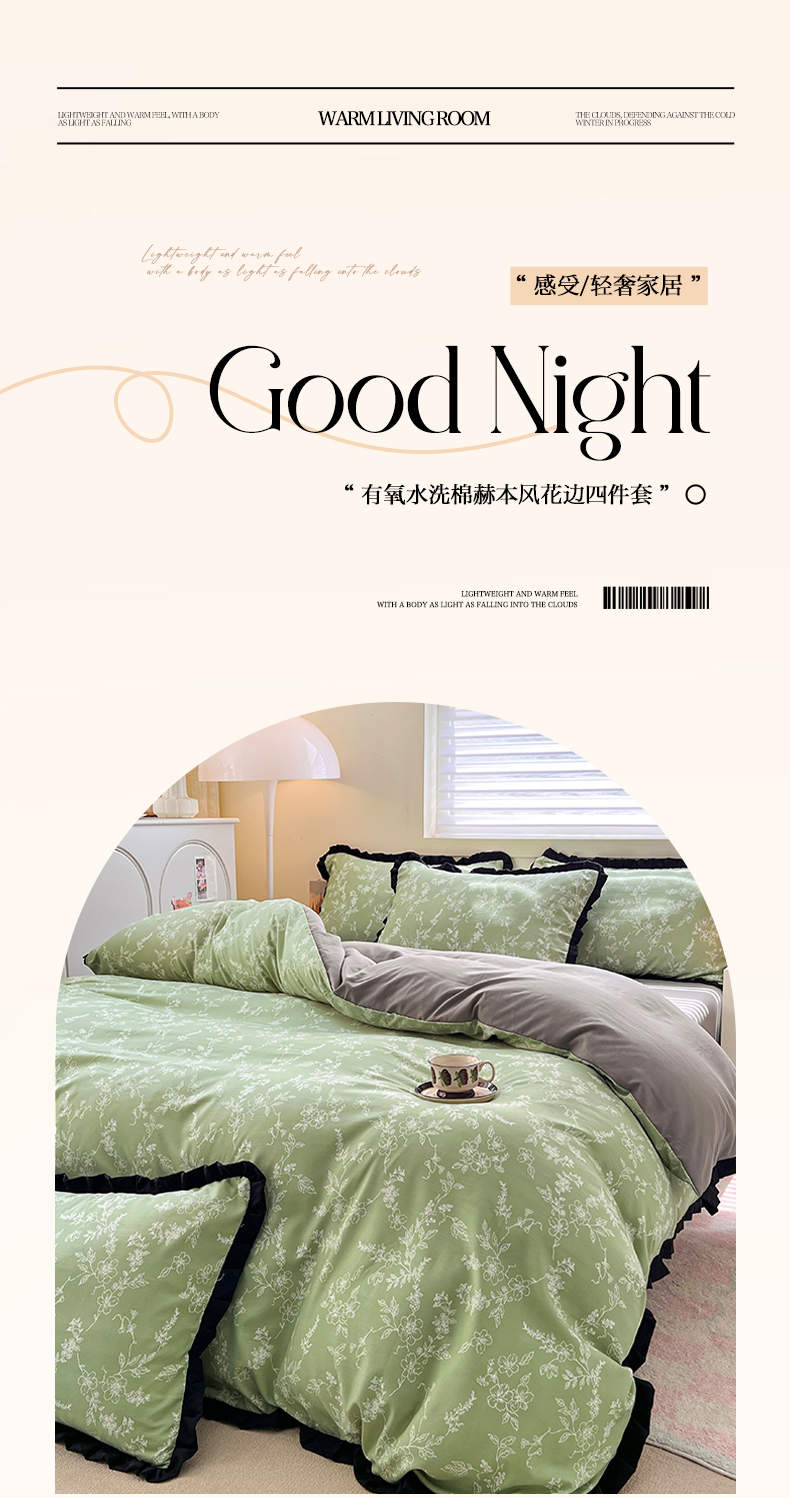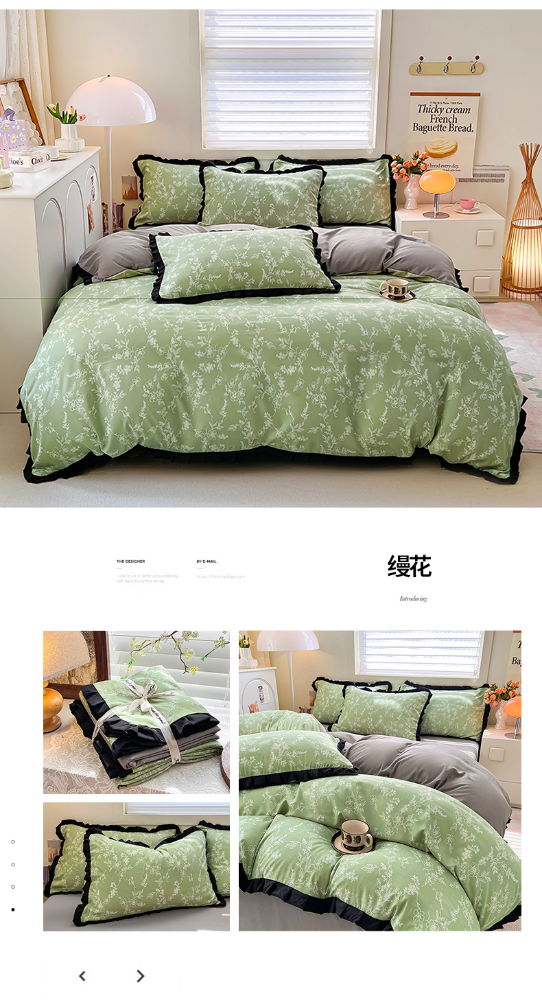 当前位置: 91家纺网 > 商品网购 > 床品套件 > 四件套 > 水洗棉四件套 > 曼璐家纺 2025新款有氧水洗棉赫本风法式黑色花边四件套 缦花