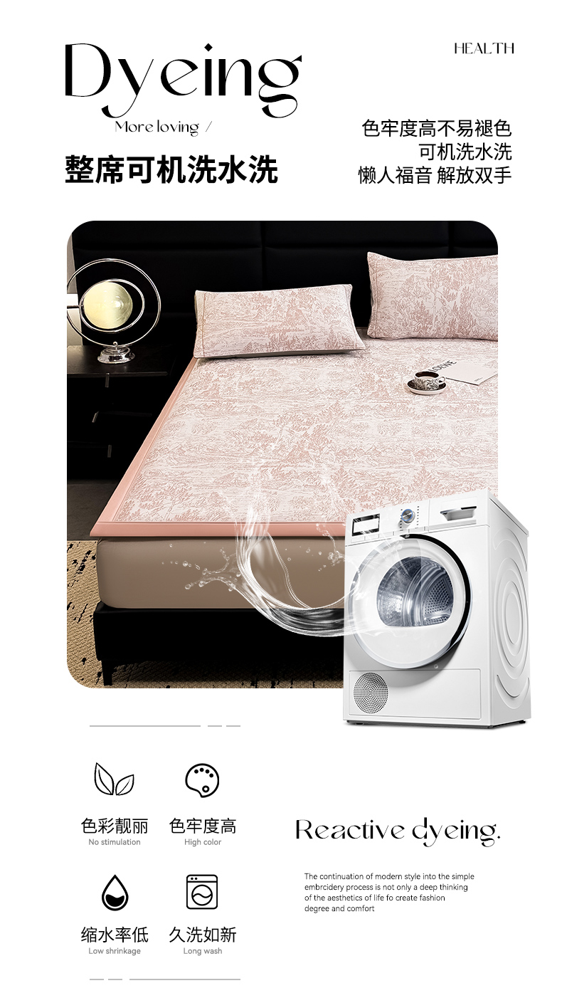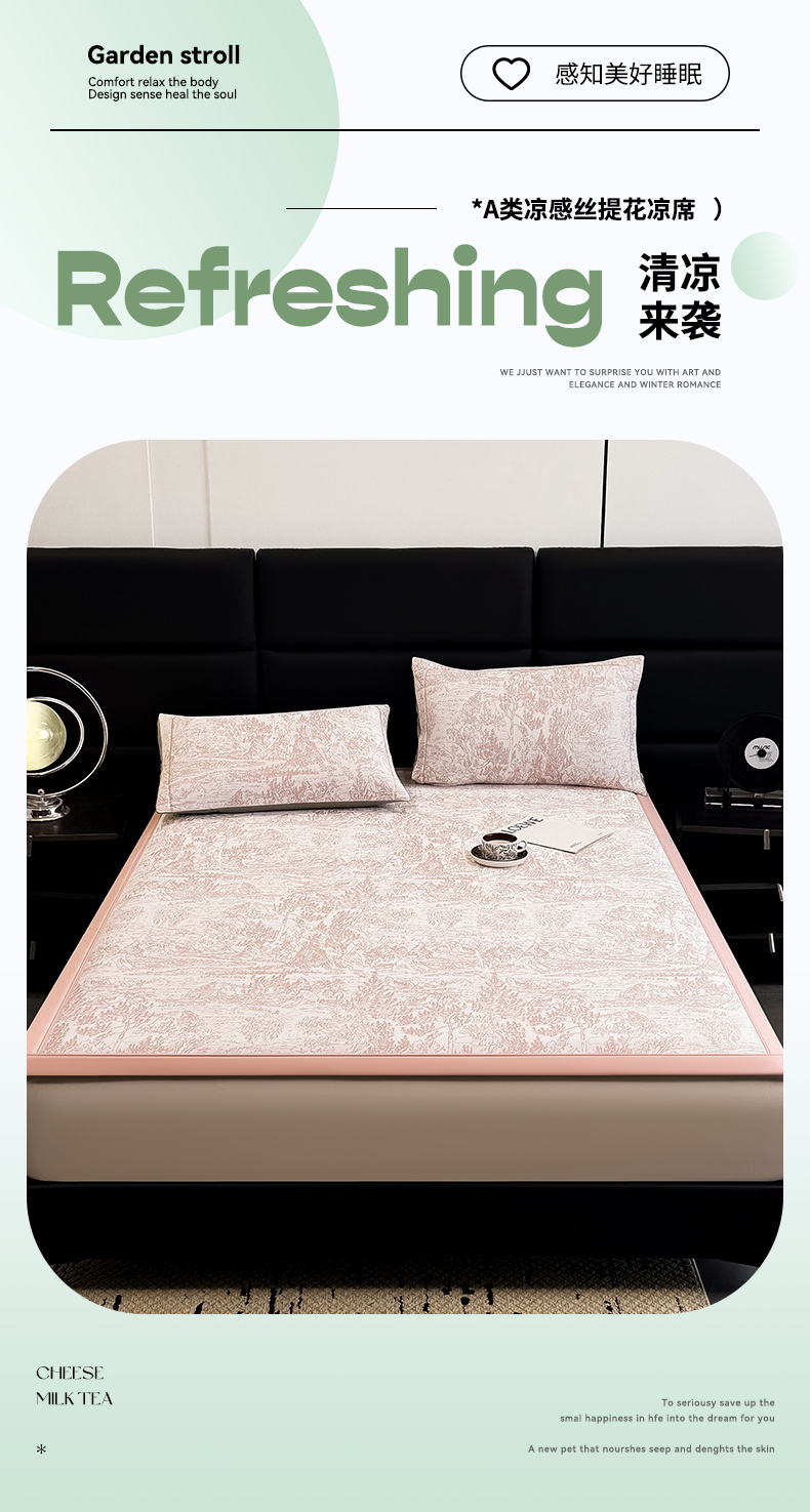 商品名称:全季家居 2025新款5A乙纶全PE花卉轻奢提花凉感软凉席席子 莫奈-淡粉 床席