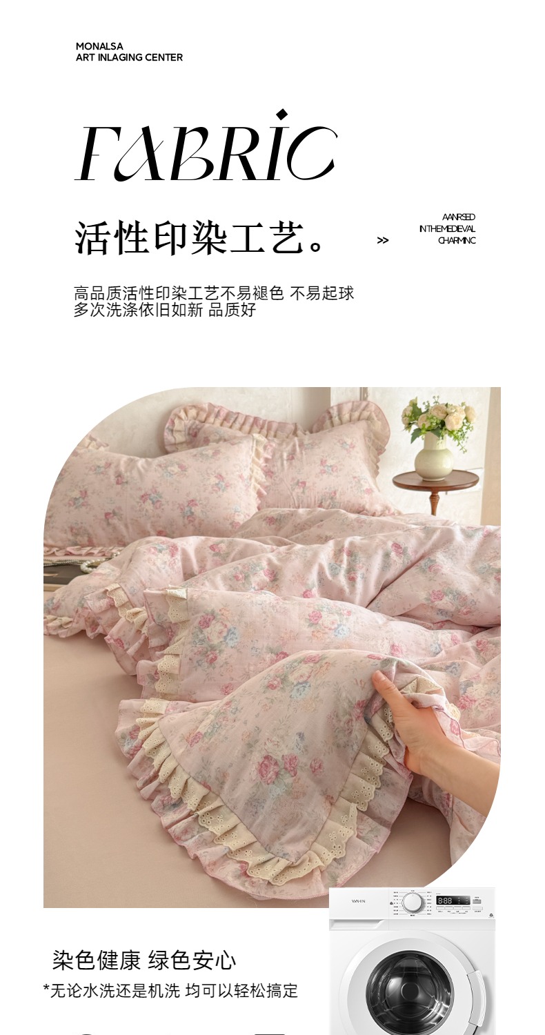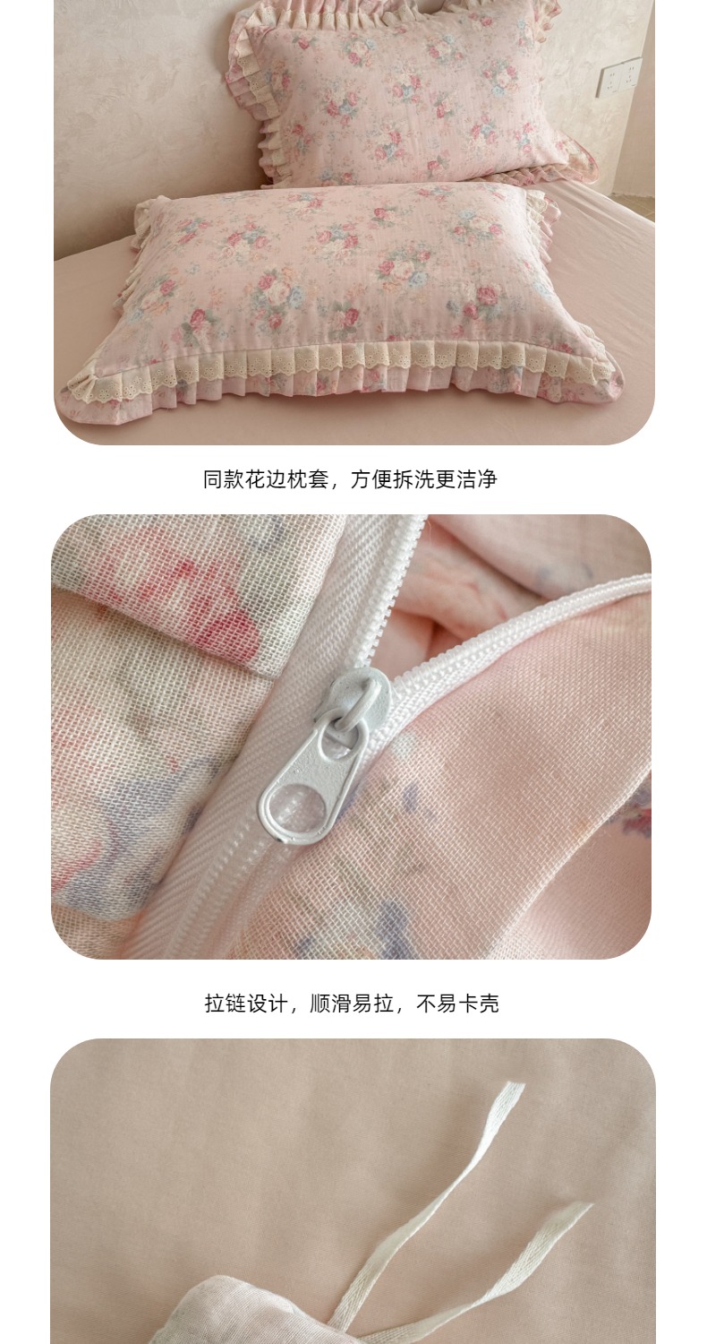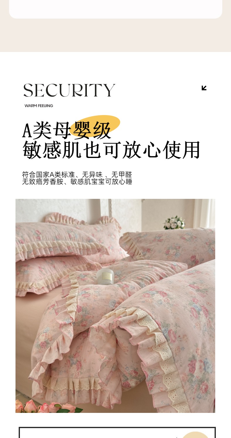 商品名称:简宜家居(朝初家纺) 2025新款40s全棉纯棉双层纱撞色蕾丝花边四件套 牡丹恋梦-粉