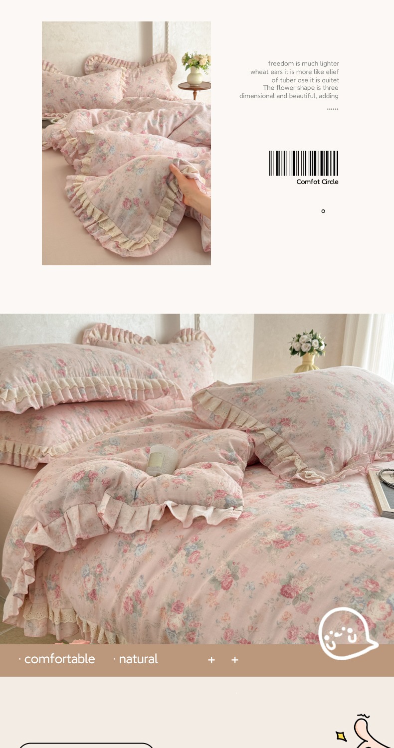 (总)简宜家居 2023新款纯棉全棉斜纹小清新宽边四件套,初遇见,繁花咖,花忆粉,青稚,倾心紫,素雅灰,东篱,锦簇,烂漫,浅牧