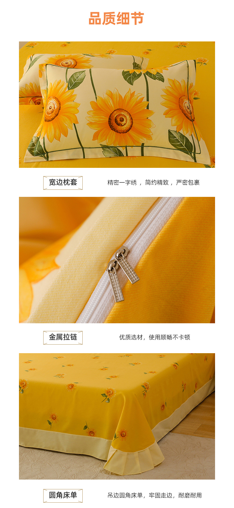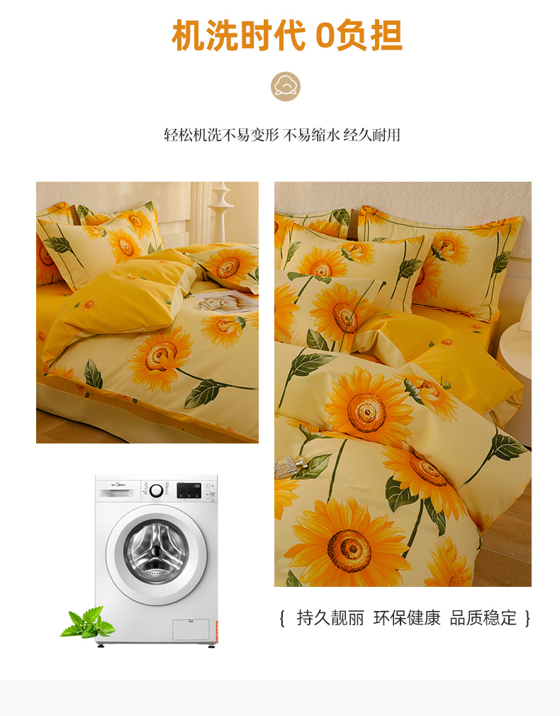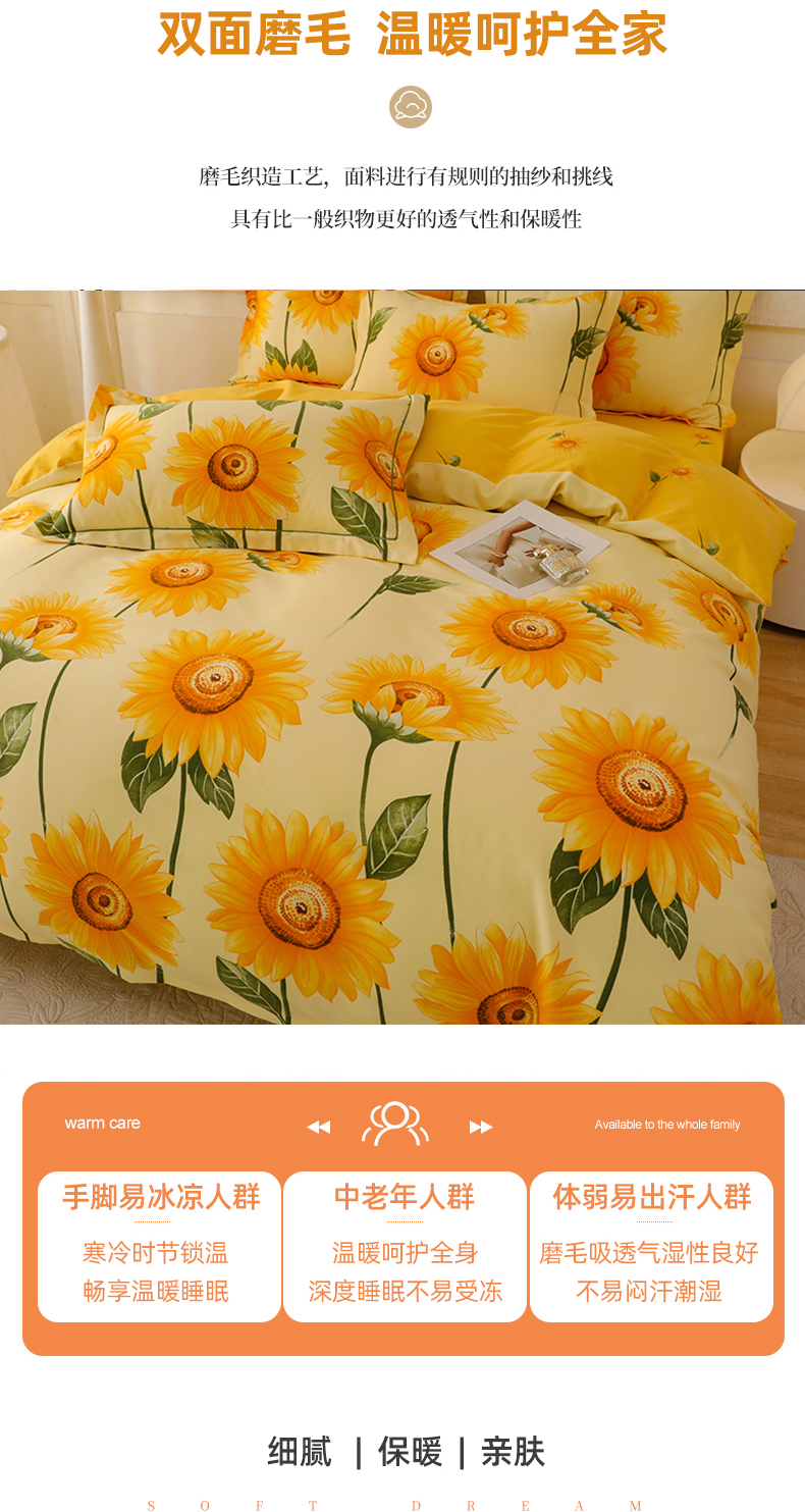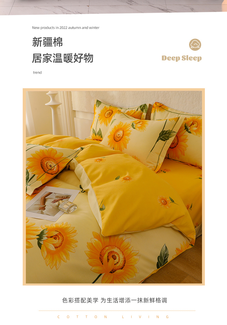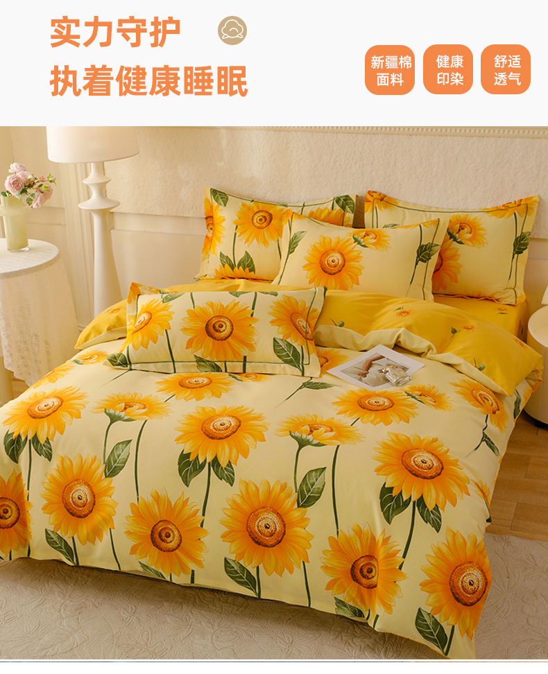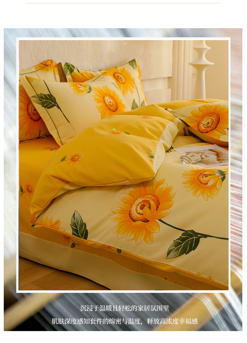 幸嘉轩 2025新款全棉秋冬加厚保暖喷气磨毛纯棉印花四件套 薇薇安-黄,薇薇安-黄