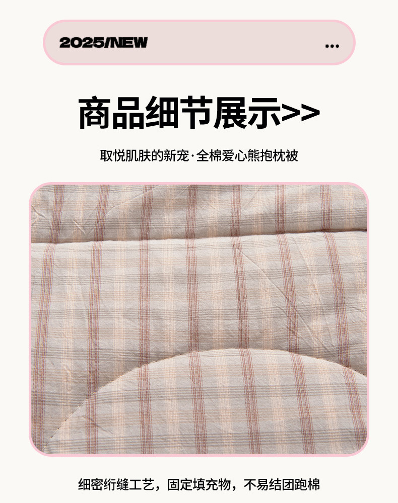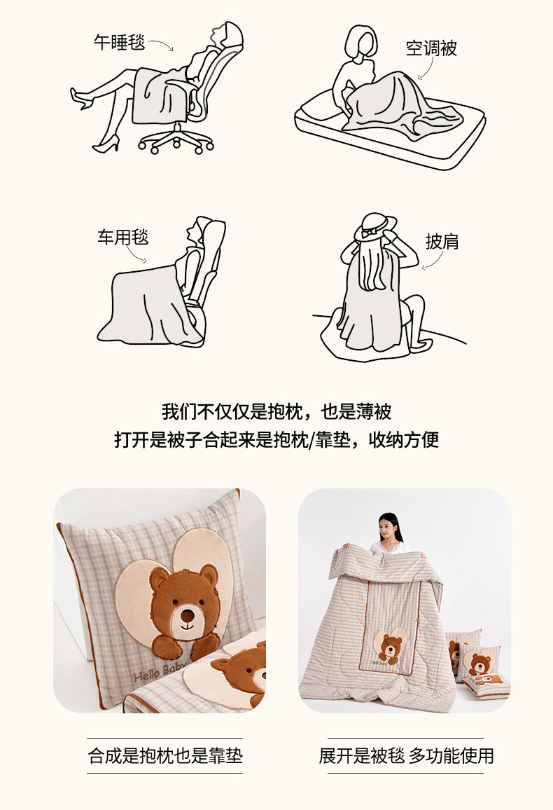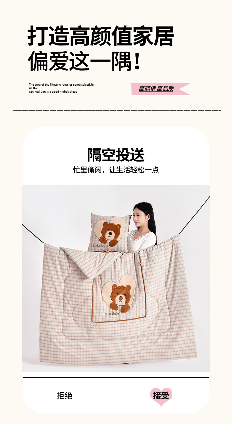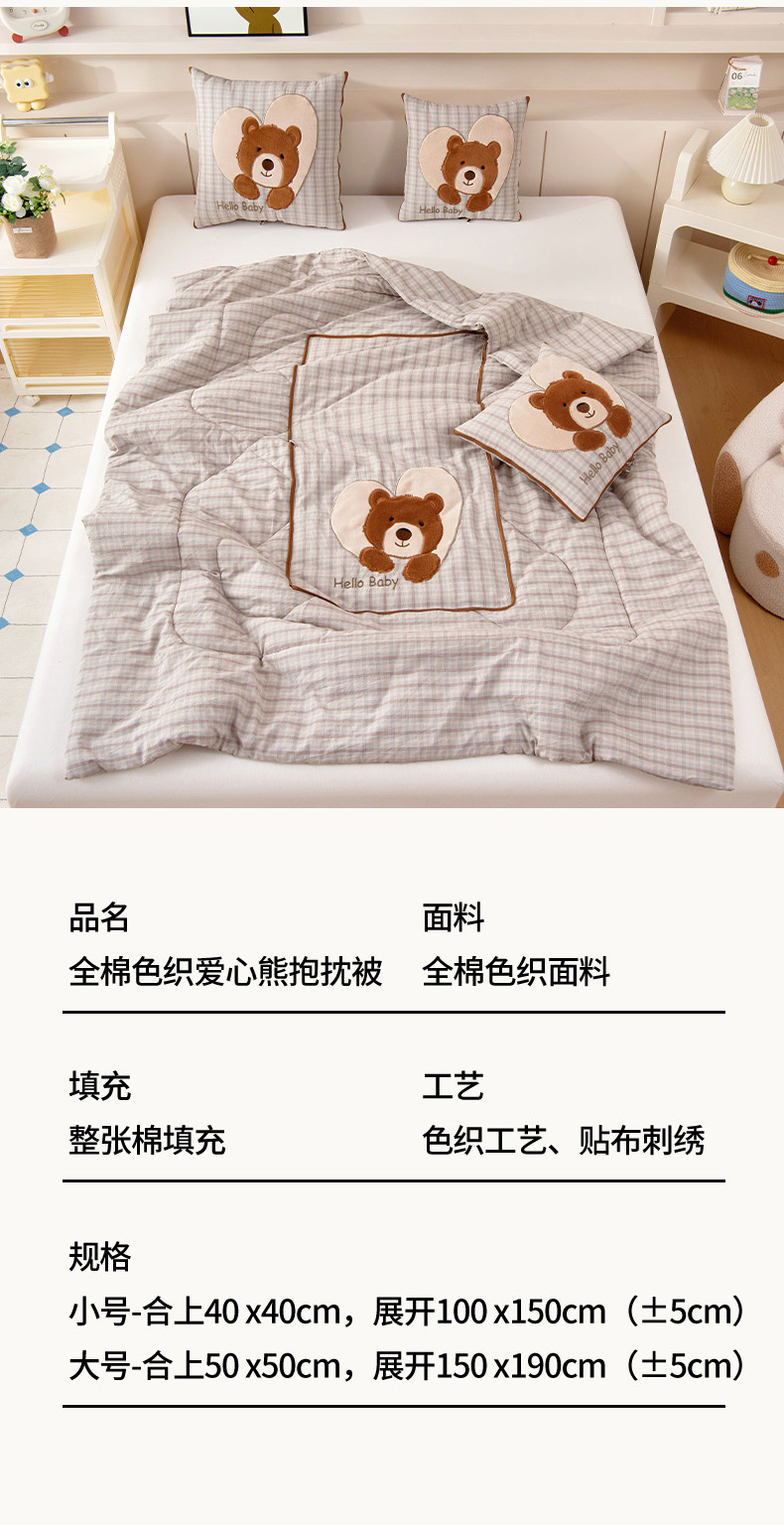 商品名称:阳光依佰抱枕被 2025新款全棉色织爱心熊抱抌被(控价小号券后不低于59元,大号不低于89元) 爱心熊一日落灰
