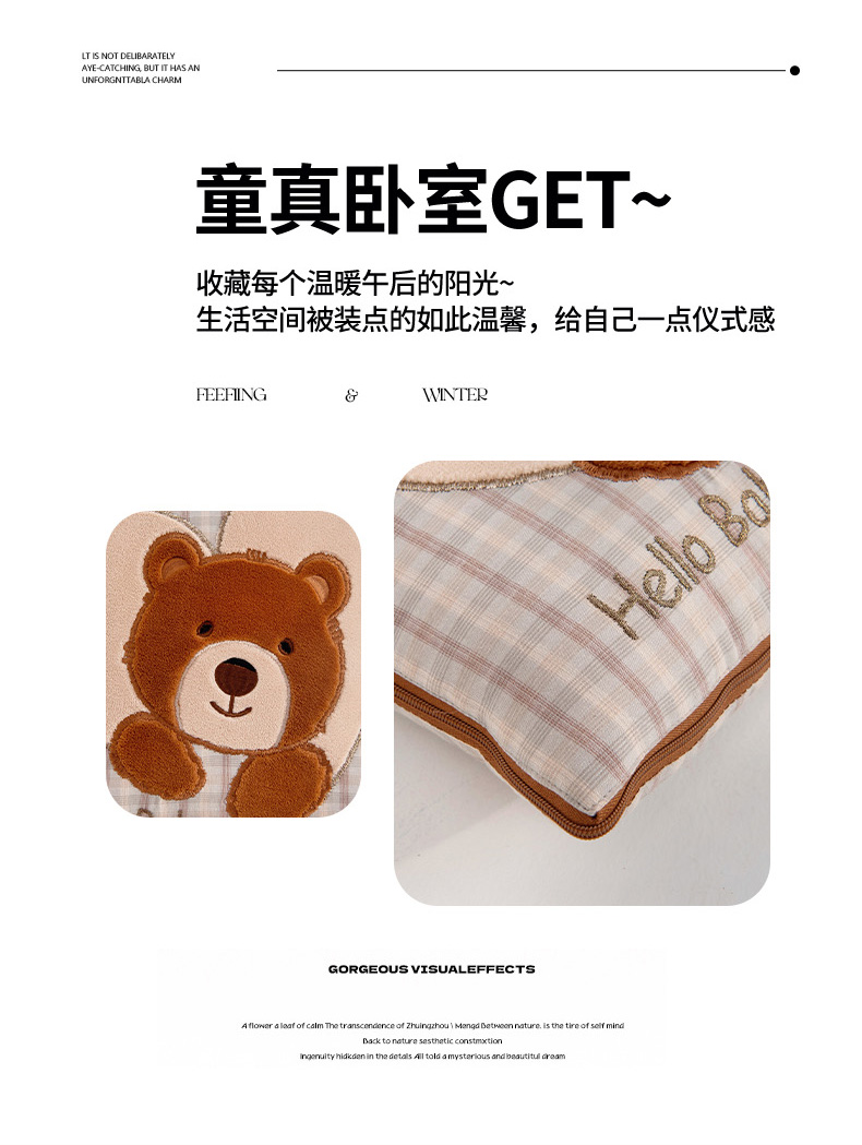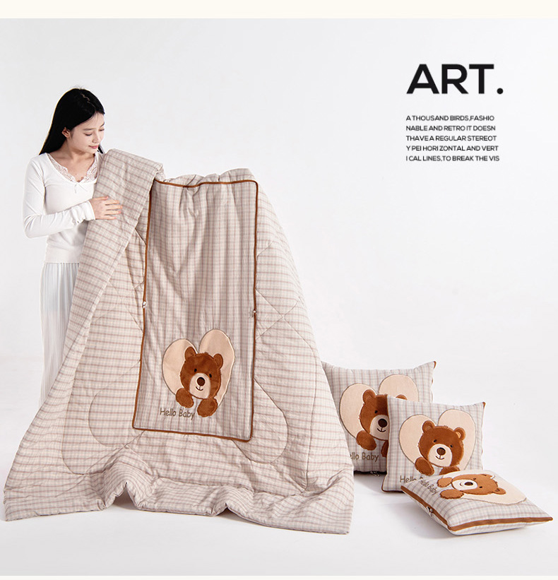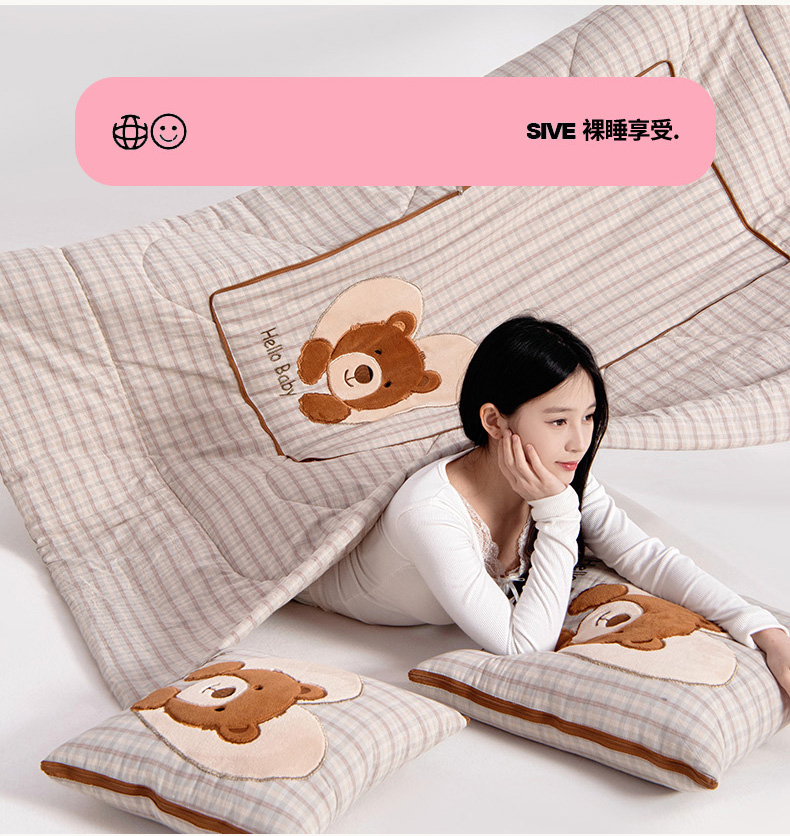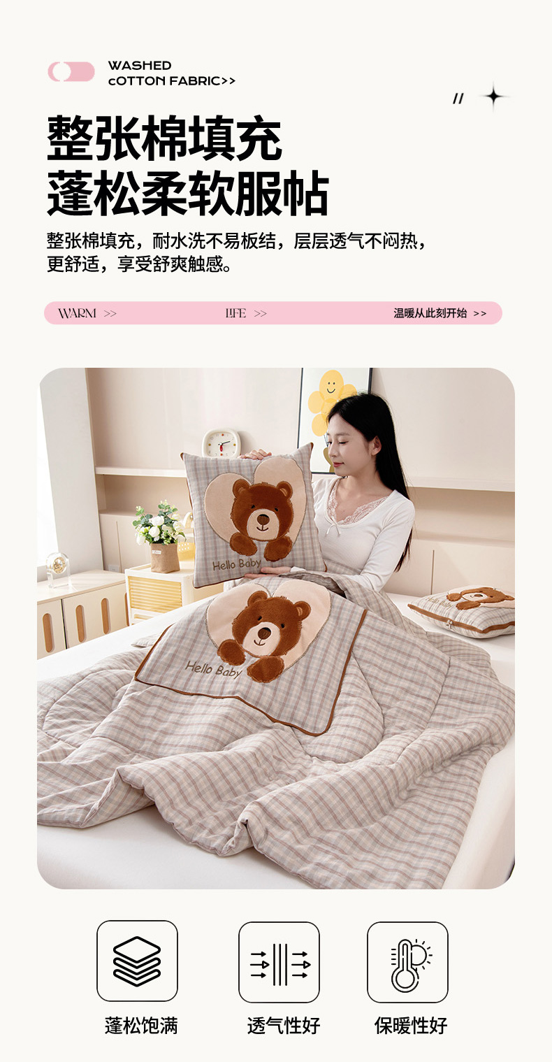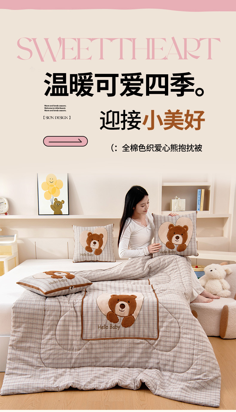商品名称:阳光依佰抱枕被 2025新款全棉色织爱心熊抱抌被(控价小号券后不低于59元,大号不低于89元) 爱心熊一日落灰
