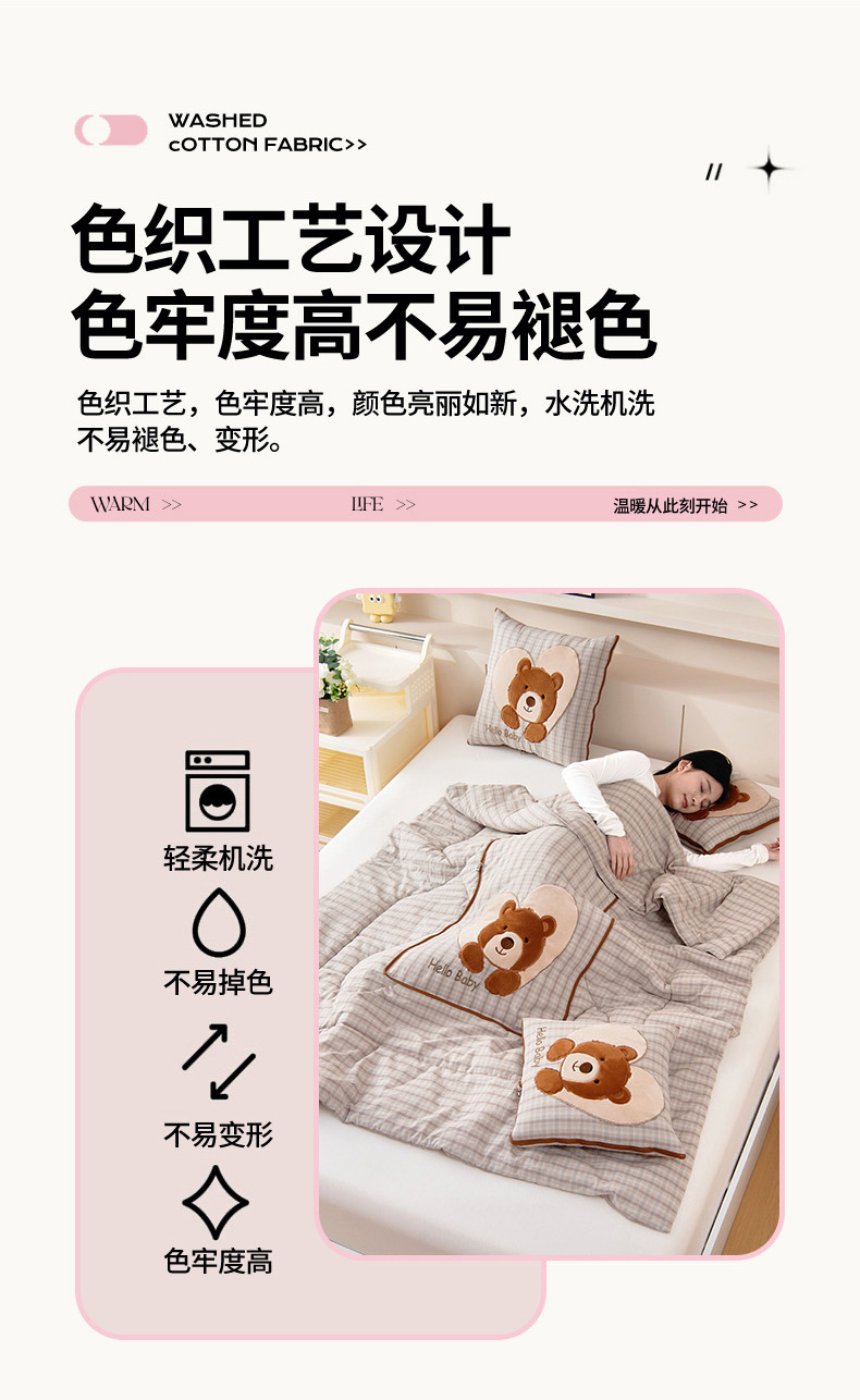 (总)阳光依佰抱枕被 2025新款全棉色织爱心熊抱抌被(控价小号券后不低于59元,大号不低于89元),爱心熊一日落红,爱心熊一日落灰,爱心熊一日落绿,爱心熊一星空桔,爱心熊一星空卡其