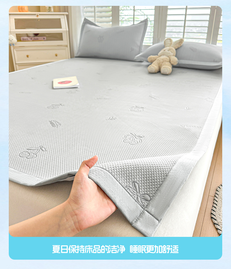 畅畅家纺 2025新款A类PE提花软席凉感冰豆豆凉席三件套 旋转木马-粉