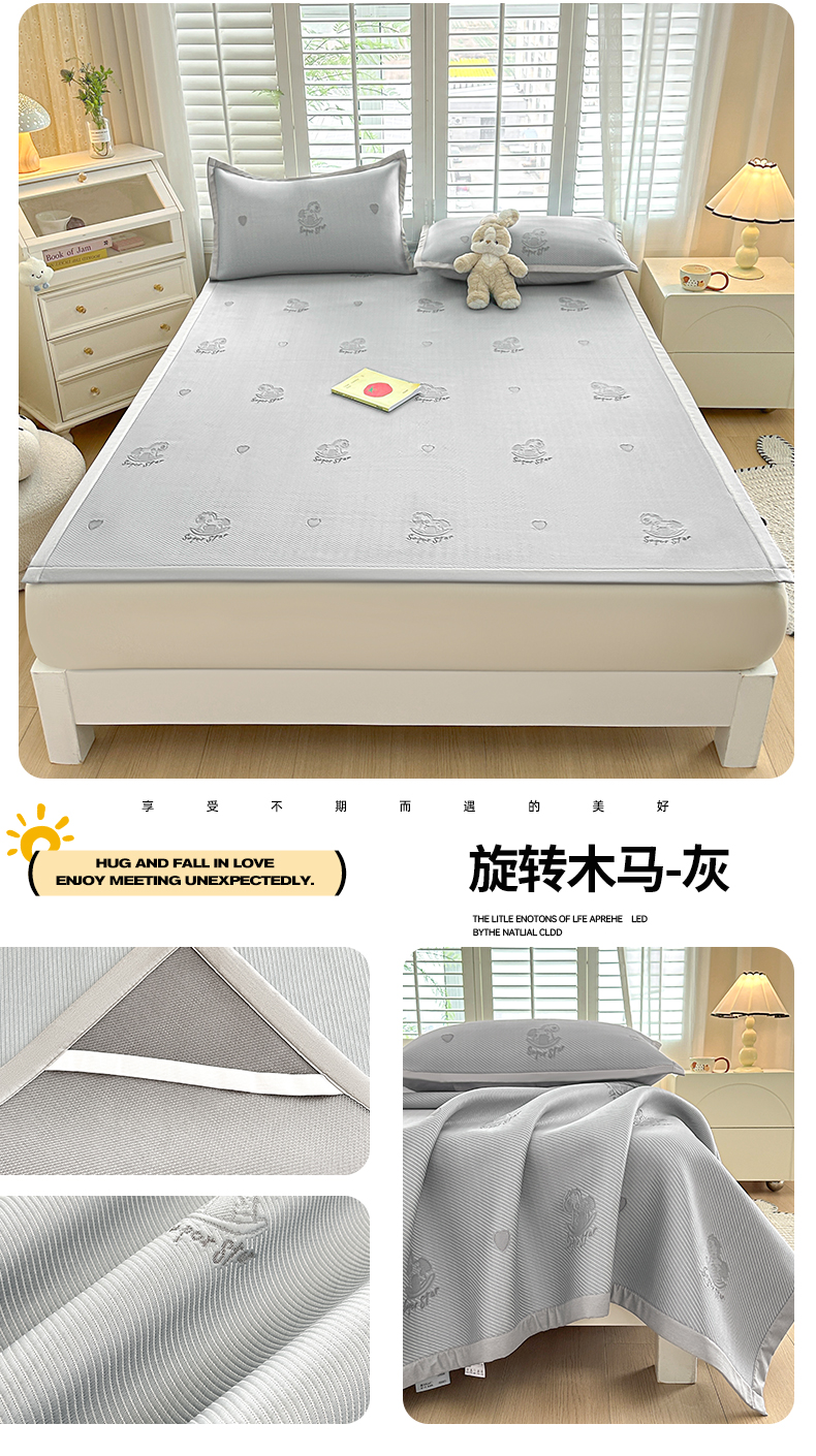 商品名称:畅畅家纺 2025新款A类PE提花软席凉感冰豆豆凉席三件套 旋转木马-粉