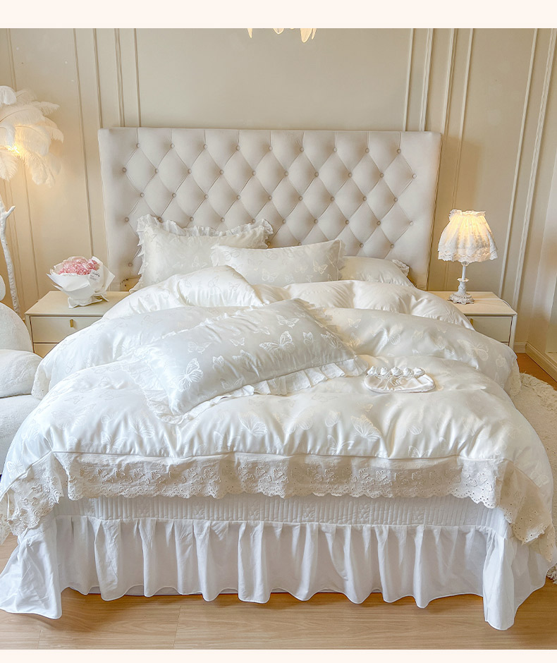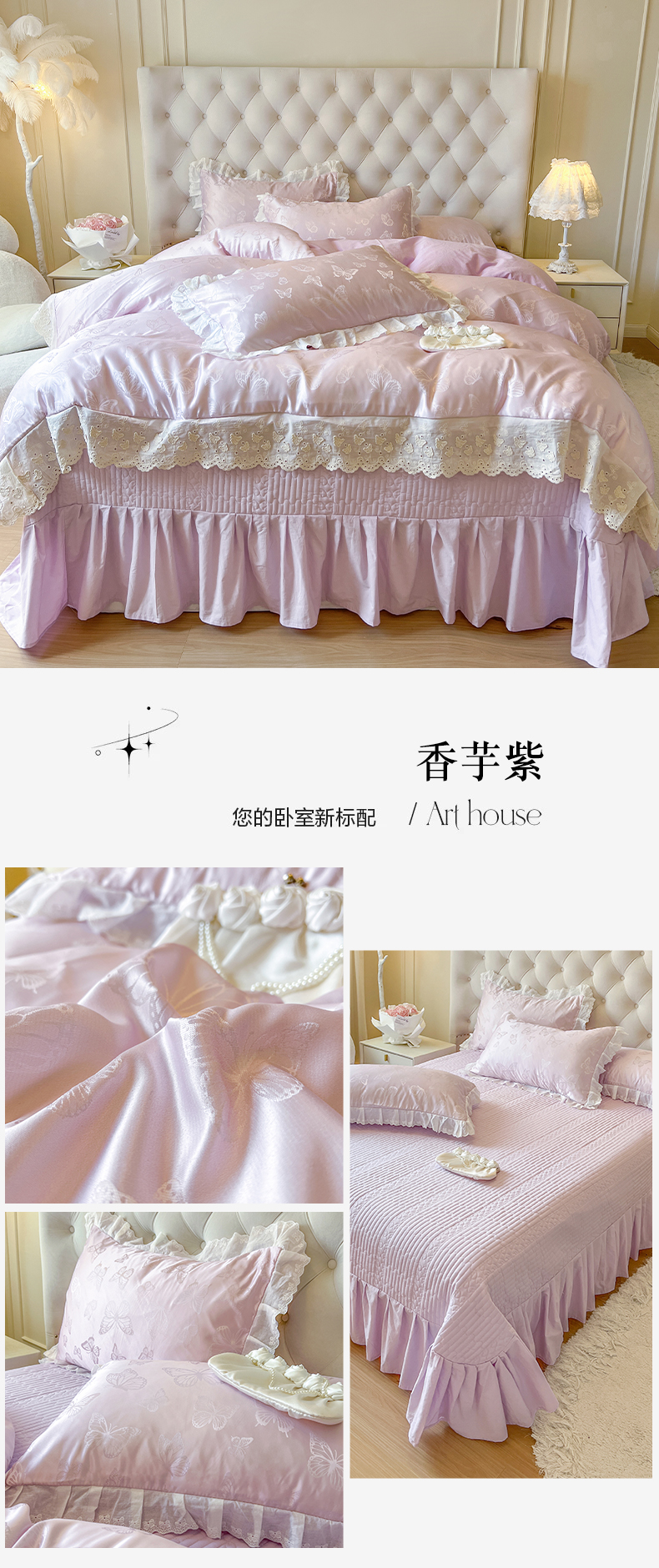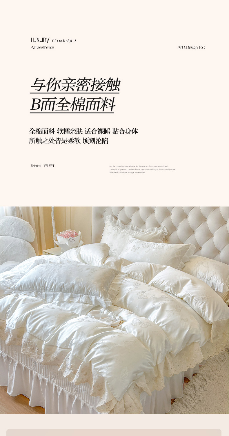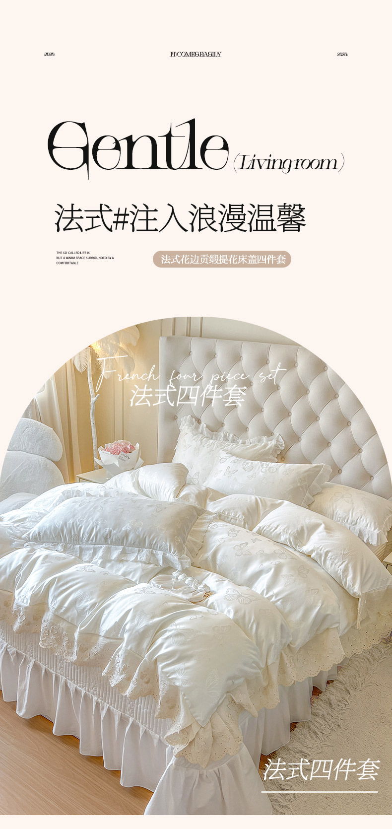 (总)瑞宝 2025新款法式花边贡缎提花床盖四件套-蝶与梦