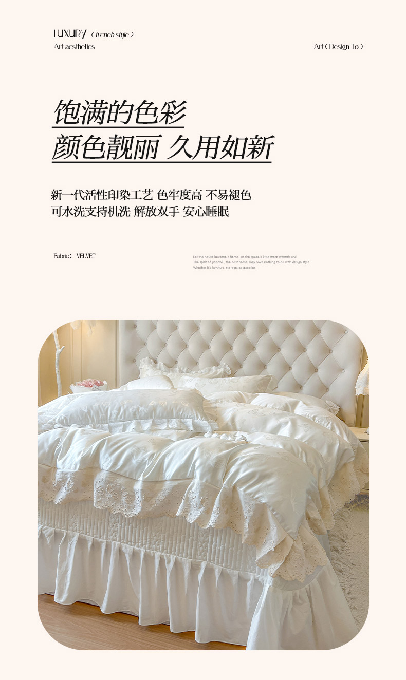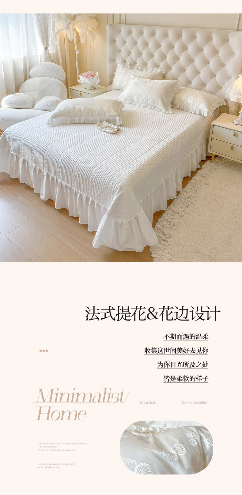 (总)瑞宝 2025新款雕花牛奶绒花边夹棉床盖四件套-莫妮卡,奶昔白,抹茶绿,奶茶咖,少女粉,雾蓝