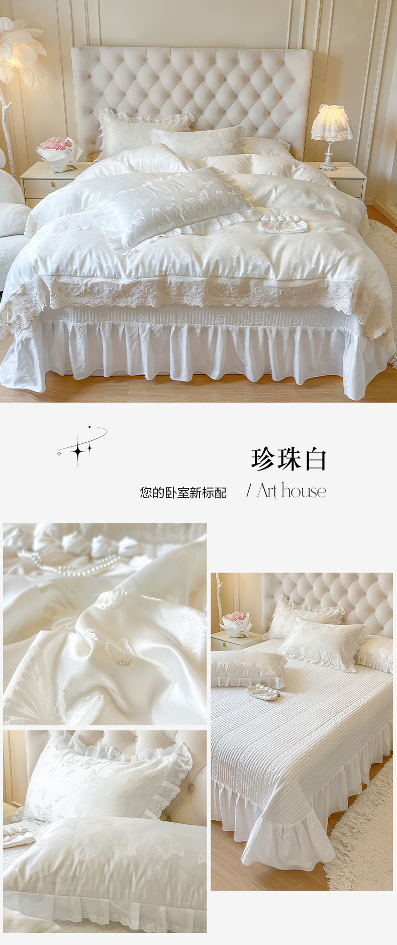 商品名称:(总)瑞宝 2025新款法式花边贡缎提花床盖四件套-蝶与梦