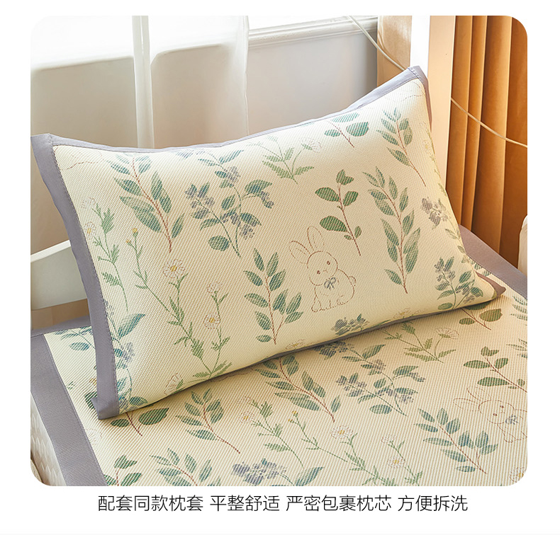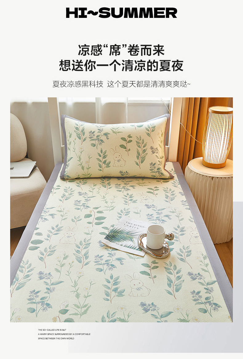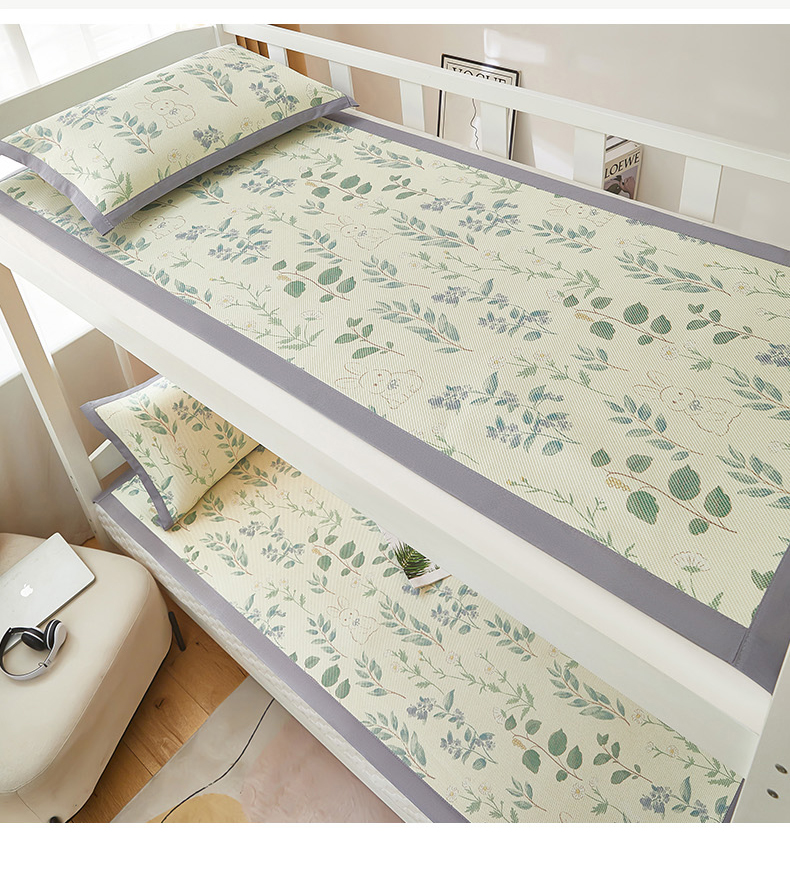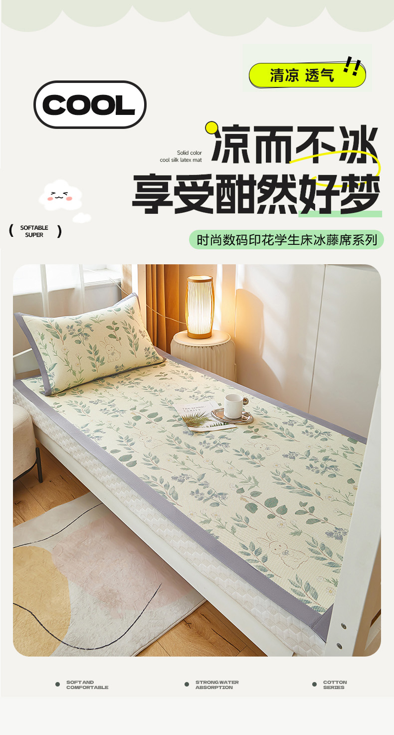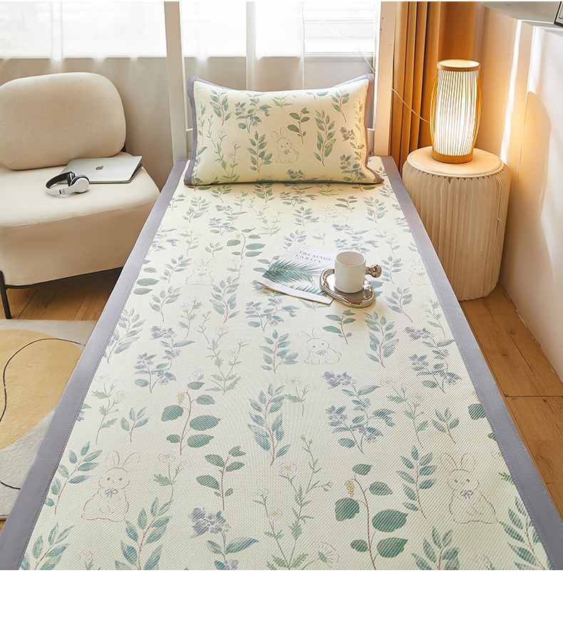 商品名称:沐慕 2025新款学生床小清新印花冰藤席 绿荫
