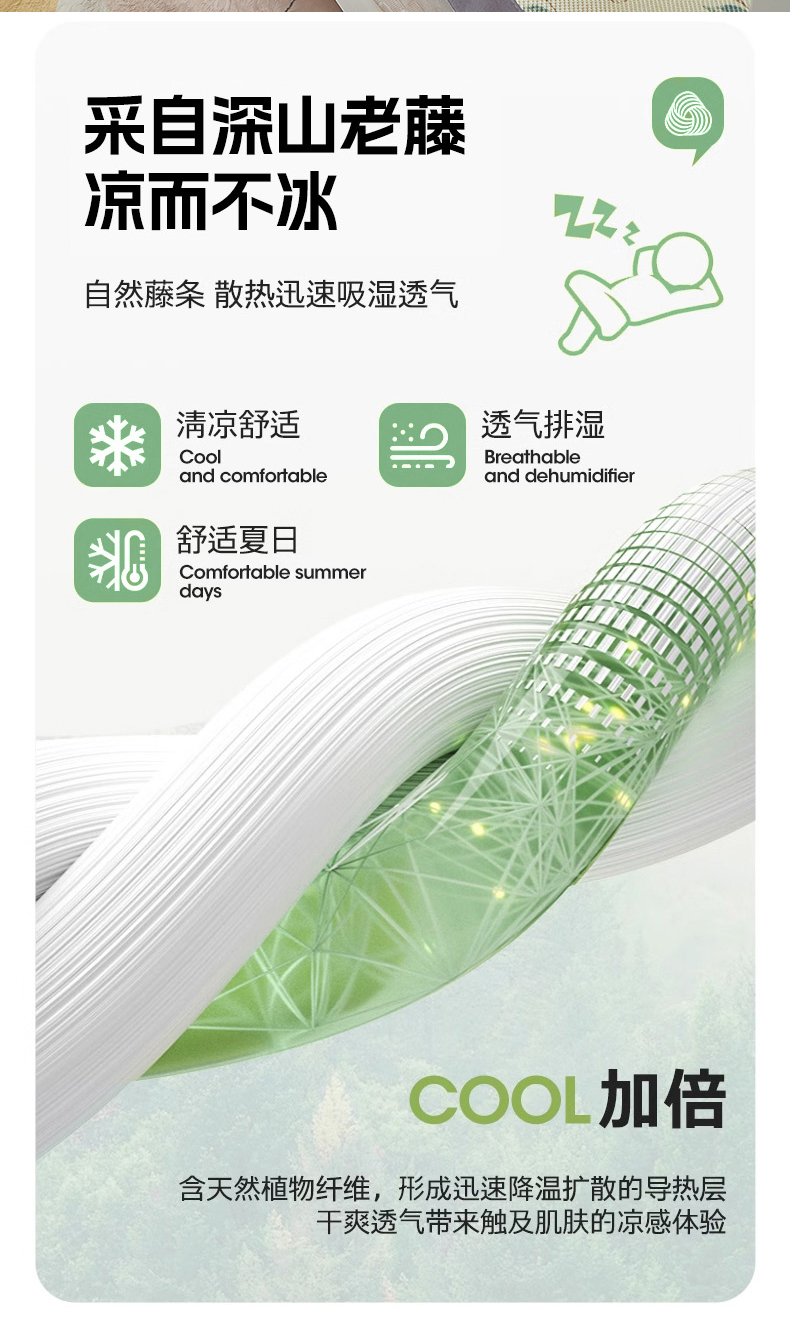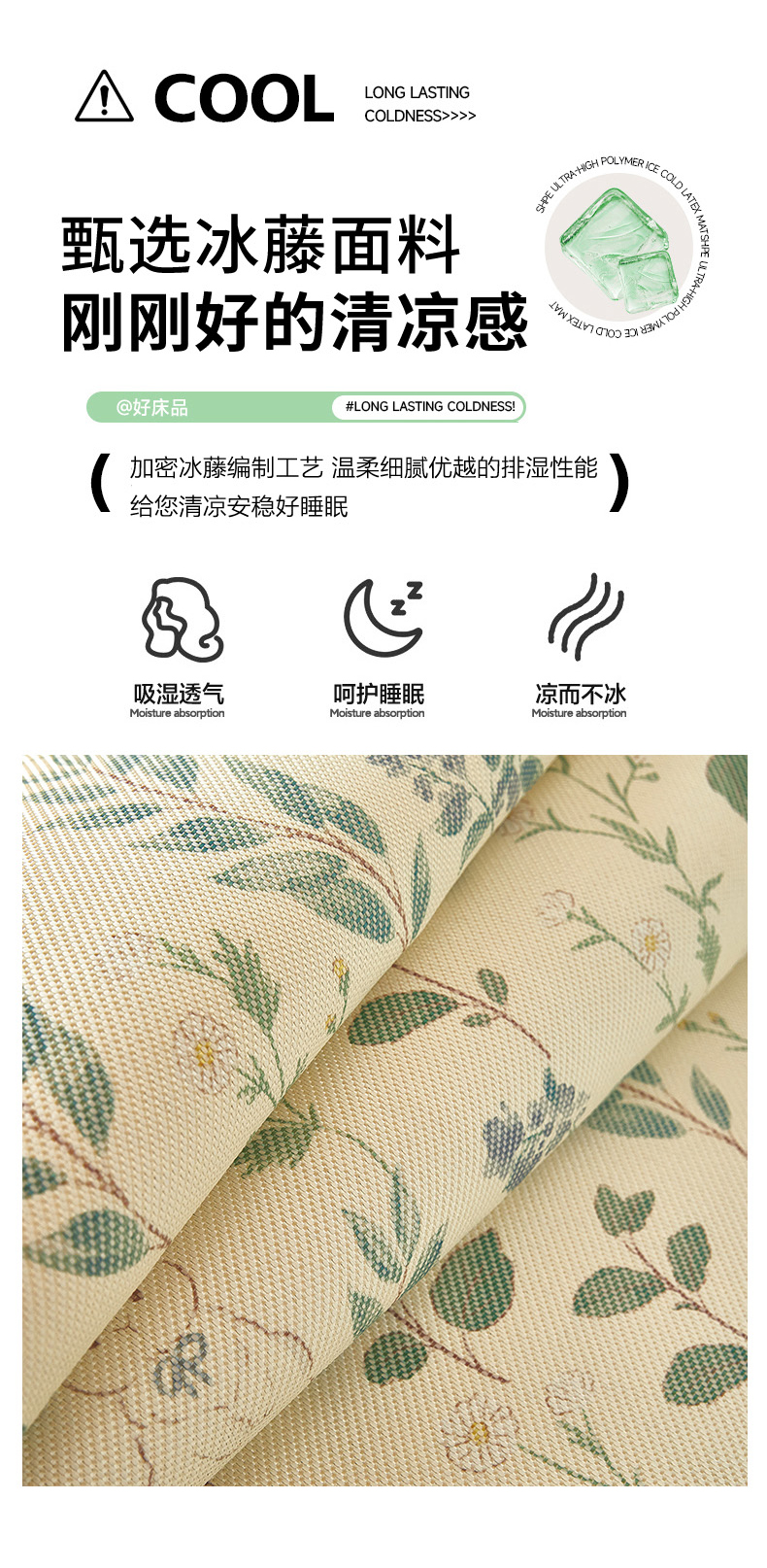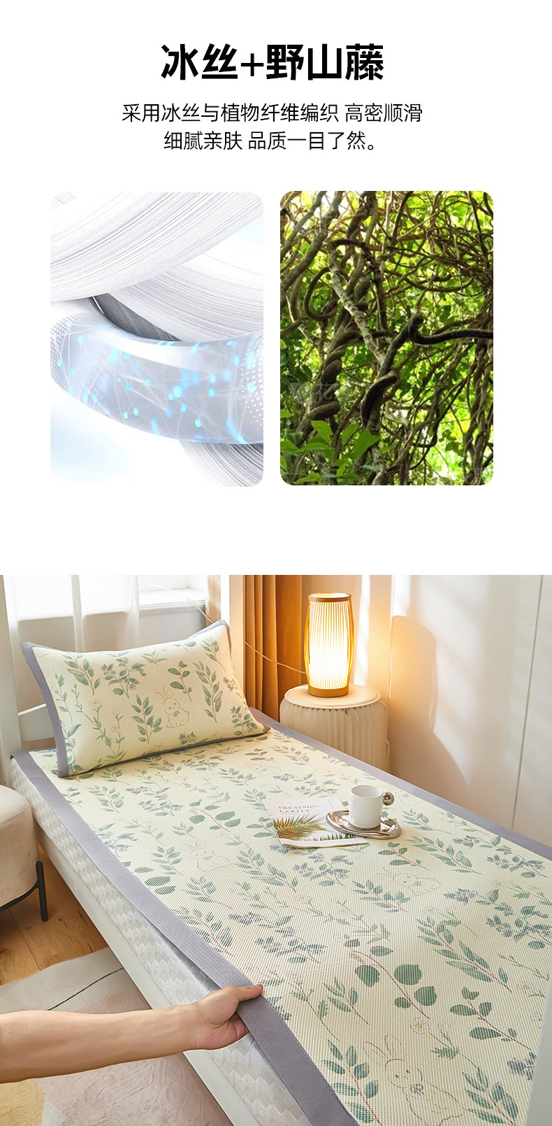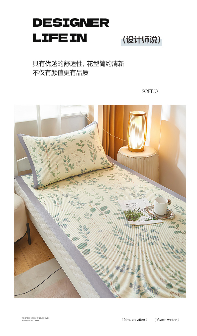 商品名称:沐慕 2025新款学生床小清新印花冰藤席 绿荫