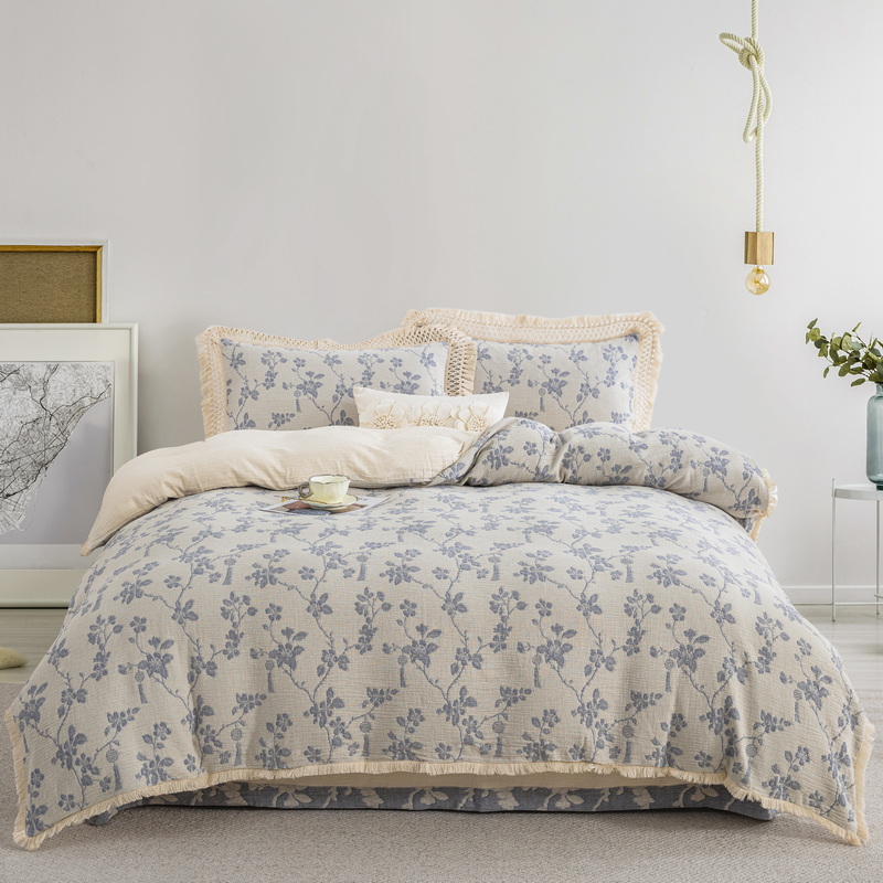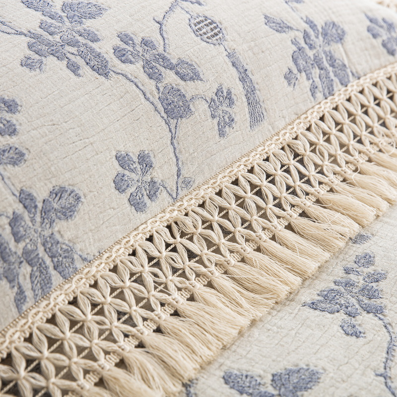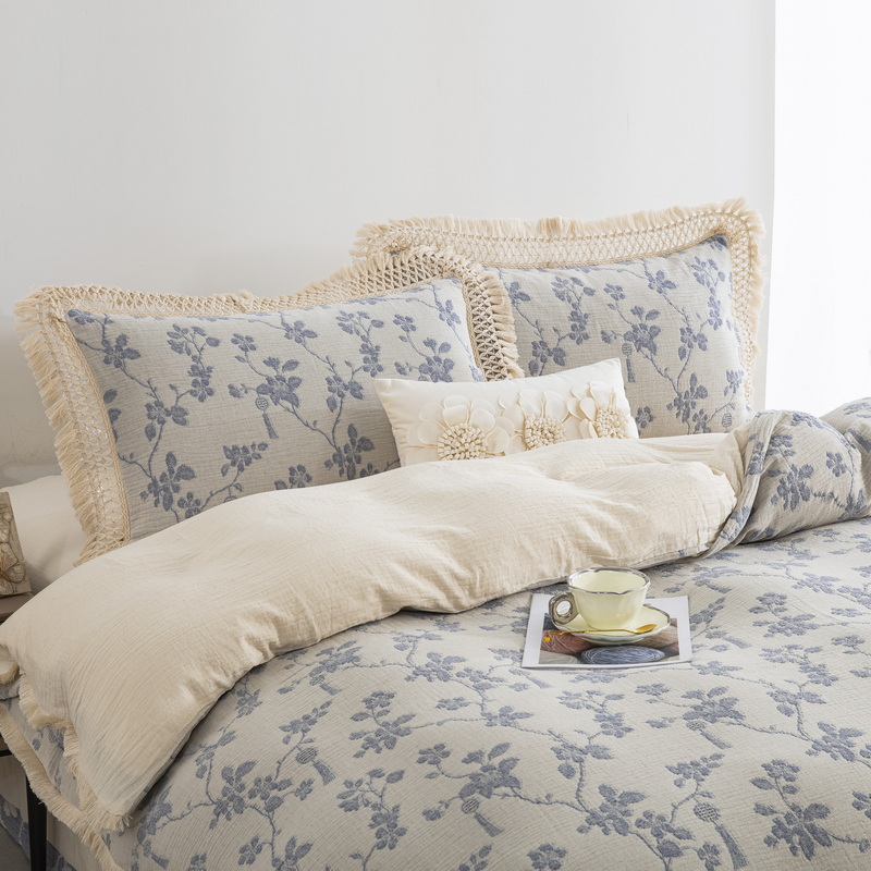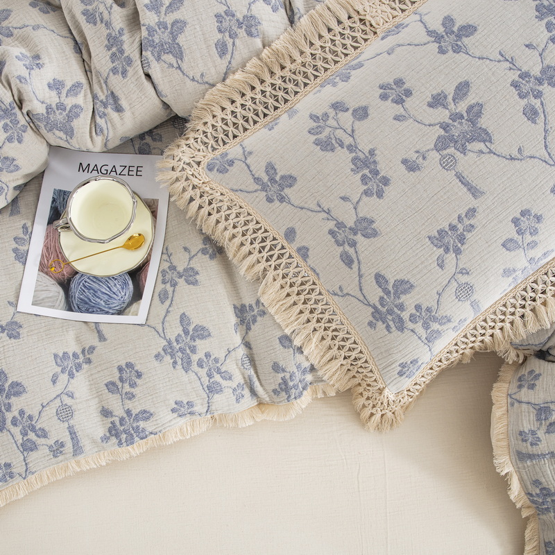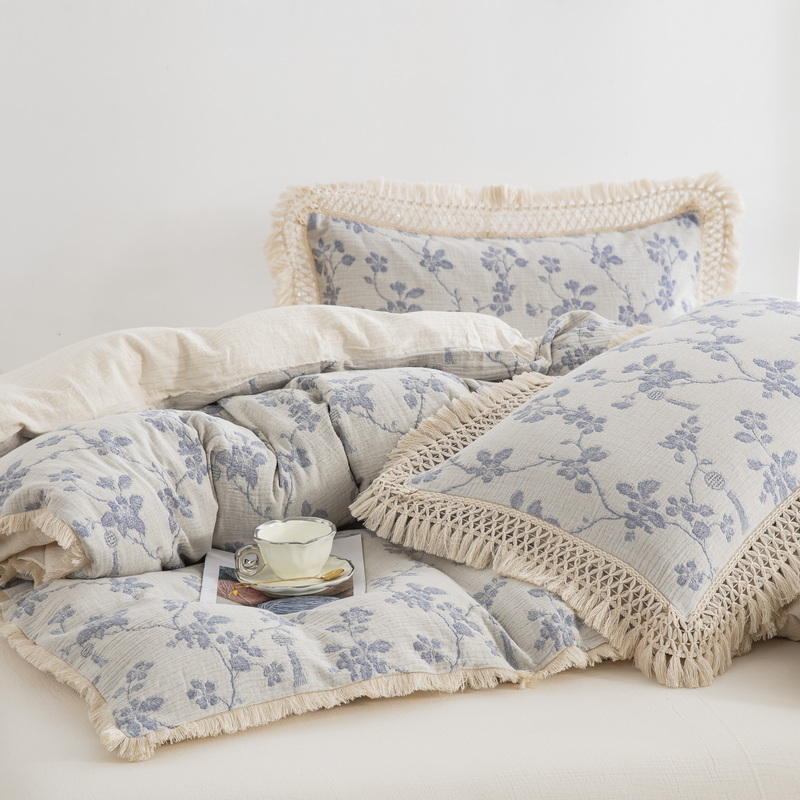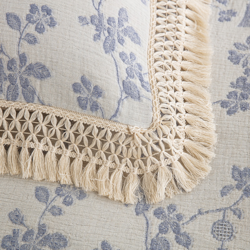 鲁爱家纺供货 2025新款AB版棉麻流苏款四件套 春晖-蓝白