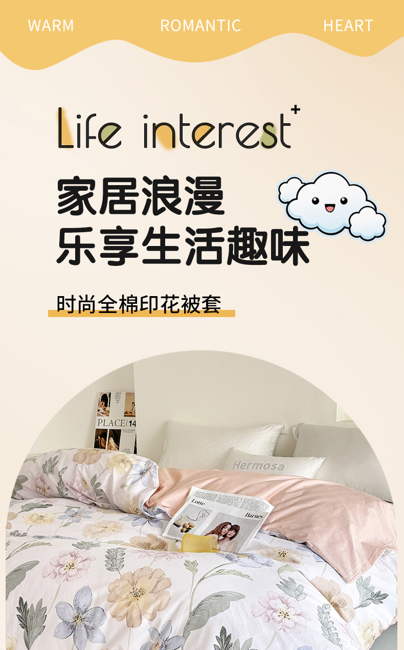 (总)安逸家纺 13376 新款全棉被套被罩学生宿舍纯棉单被套