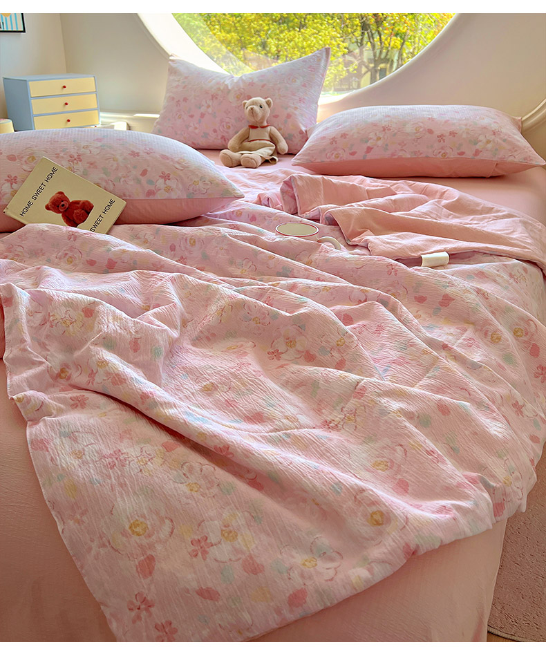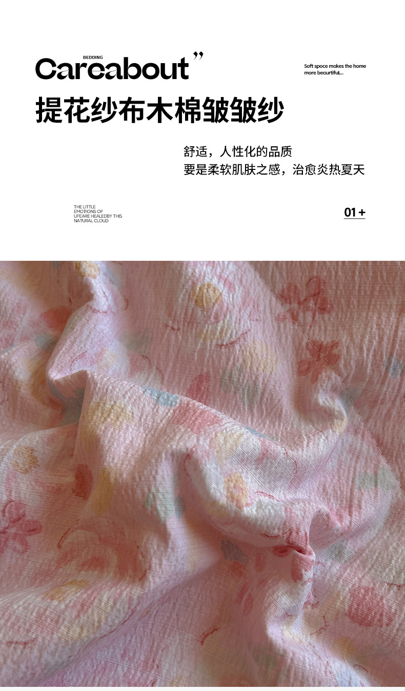 (总)2025新款A类云感提花纱布棉皱皱纱四件套(贴布风),风信子,可可栗子,快乐兔,玫瑰小能,美娜滋,蘑菇森林,淘气奶兔,紫色梦境,汪汪乐园