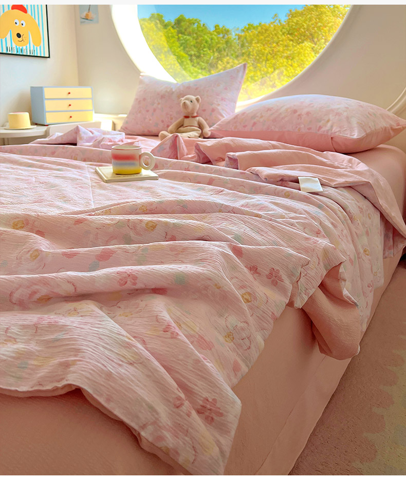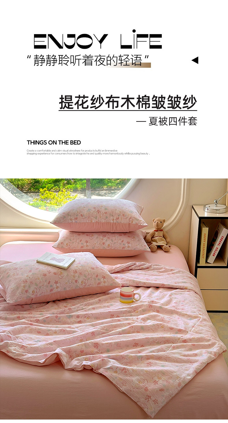 (总)金梦拉家纺 2025新款加厚皱皱纱婴儿纱四件套,薄雾山茶-粉,薄雾山茶-兰,蝶舞,海棠花颂,花开有时,觅糖,奶昔小熊,奶油草莓,小萌物,小樱桃,雨茉风铃,枕边话