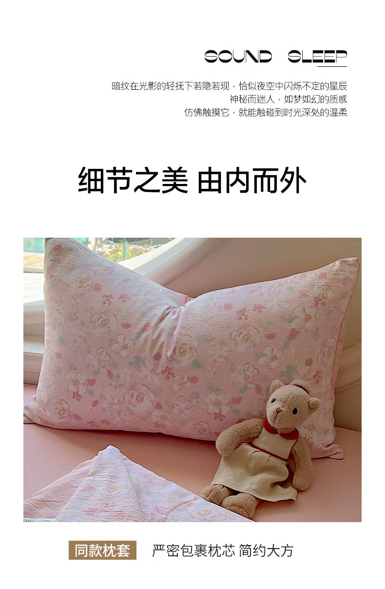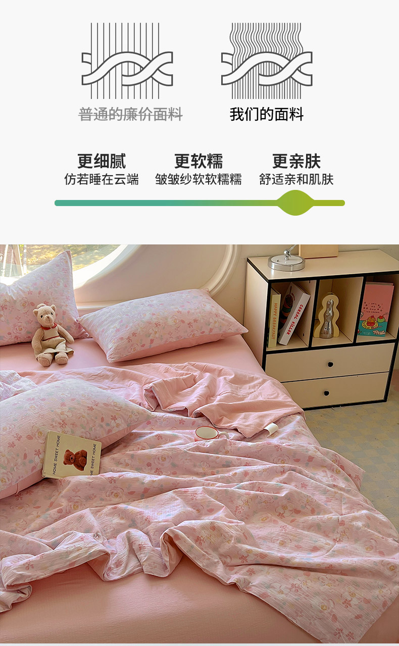 (总)金梦拉家纺 2025新款提花纱布棉双层纱皱皱纱四件套,微醺玫瑰,梦华录,花开半夏,漫山紫野,薄荷初夏,点点草莓,法式浪漫,粉杏绿,花颜,惠心,桔梗紫,咖调蝴蝶结,快乐狗,梨落,林间兔,绿意,绿茵,满园春色,曼塔庄园,萌萌小兔,雾野山茶,小野菊,寻春,樱桃,月梨漫香,芝士黄,枝蔓绿,紫线调,紫樱落