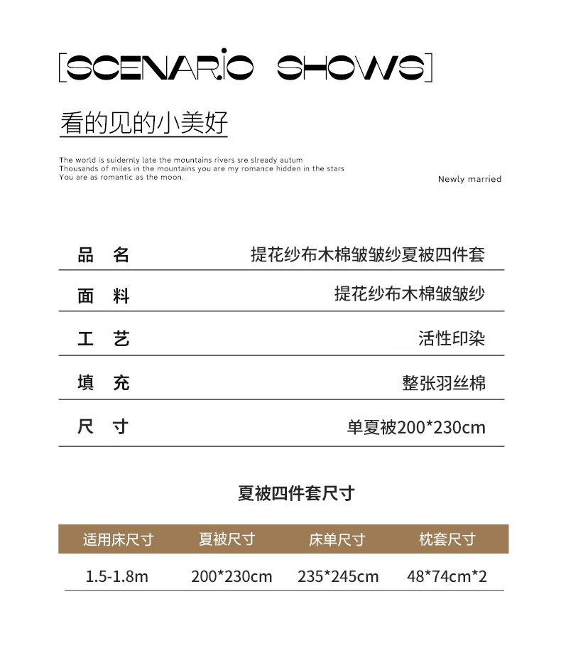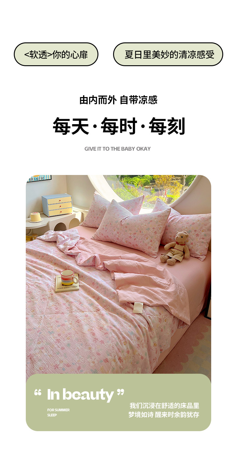 1.5床夏被四件套【夏被200*230cm*1条+床单240*245cm*1条+枕套48*74cm*2只】
