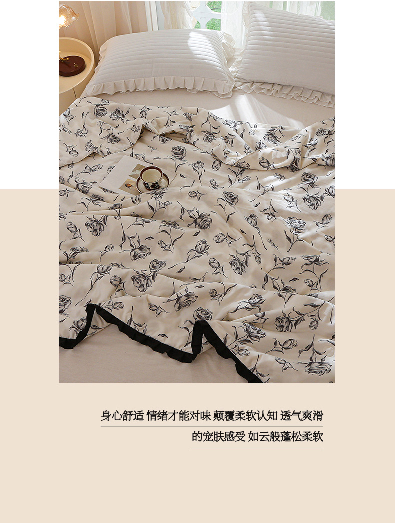 商品名称:薇玛仕 2025新款韩版宽边水洗棉大豆夏被赫本风亲肤柔软夏季薄被子 赫本-玫瑰