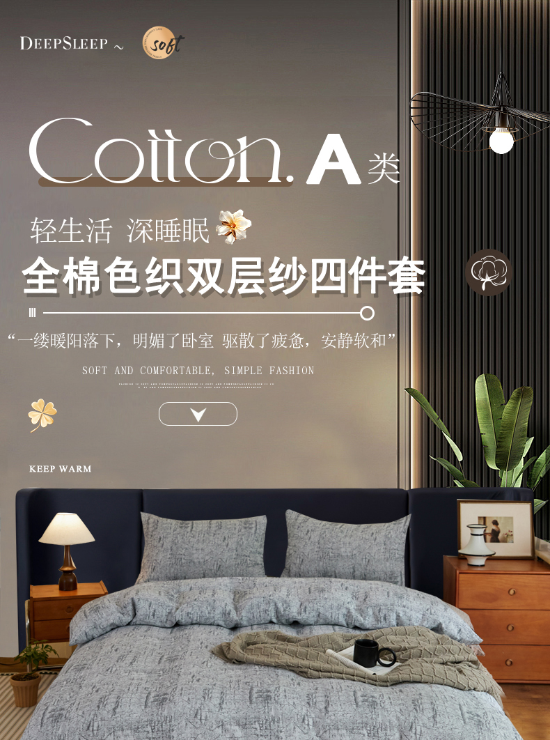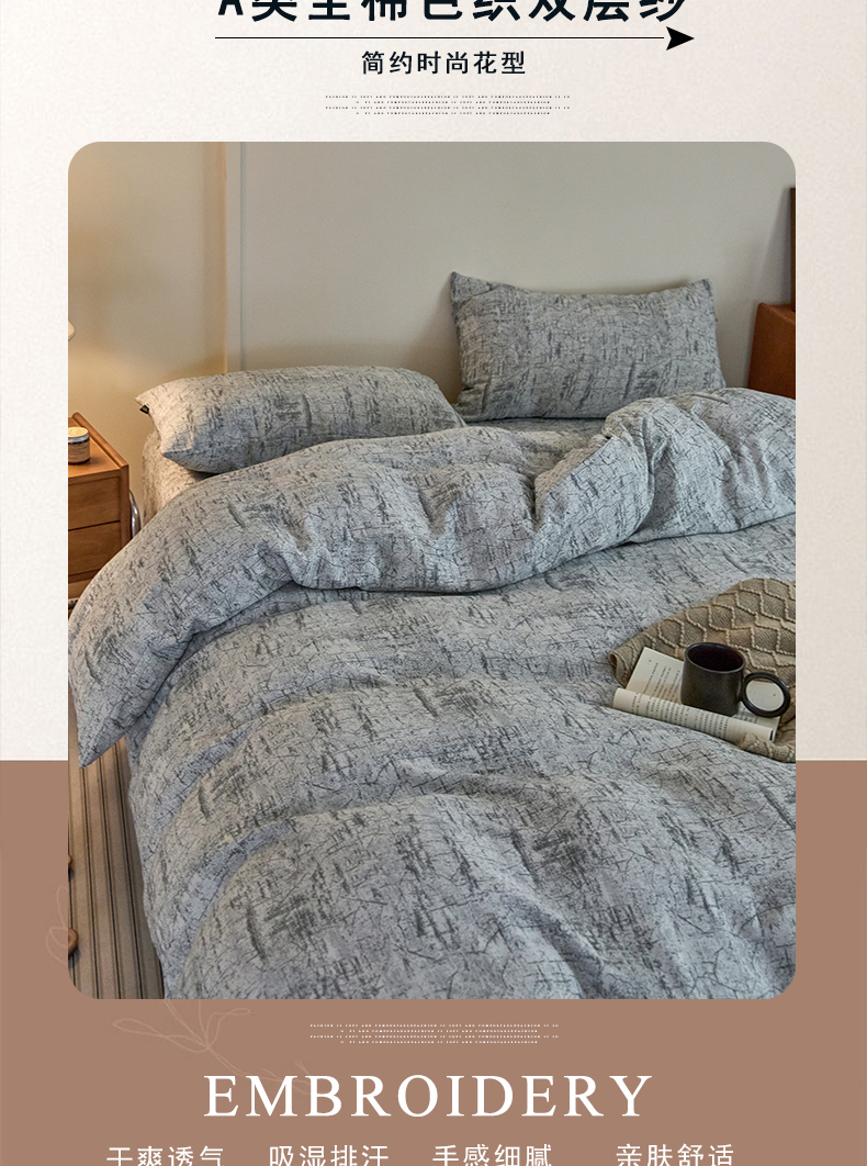 (总)云雀 2025新款A类全棉色织双层纱四件套,格林-豆纱,格林-咖色,格林-绿,格林-浅灰,格林-深灰,格林-烟红,格林-烟灰