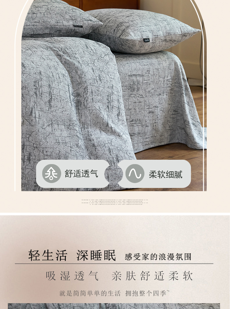 商品名称:云雀 2025新款A类全棉色织双层纱单床单 格林浅灰