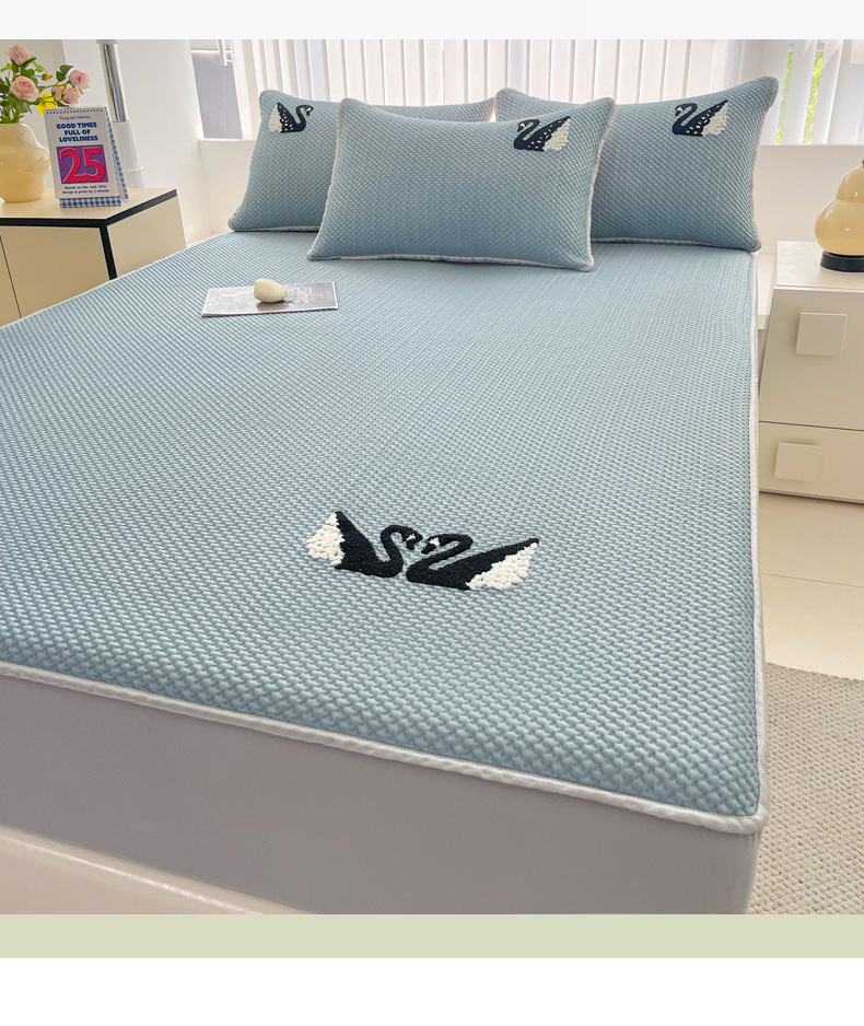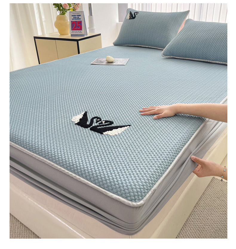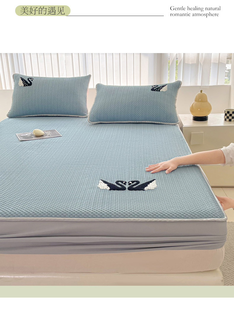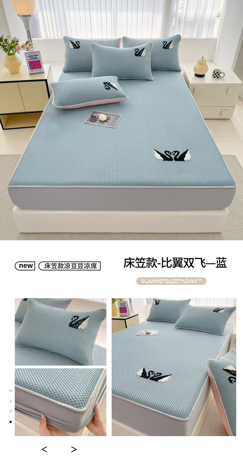 恋佳居2025新款A类乙伦PE凉豆豆毛巾绣床笠冰丝席(床笠款) 比翼双飞—蓝