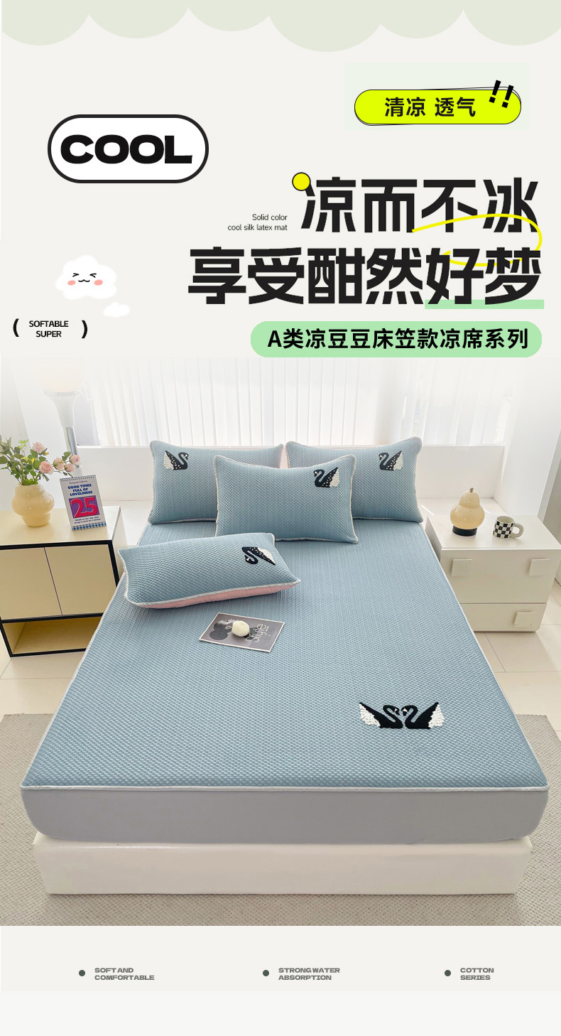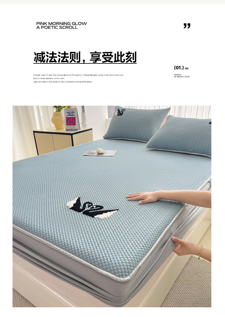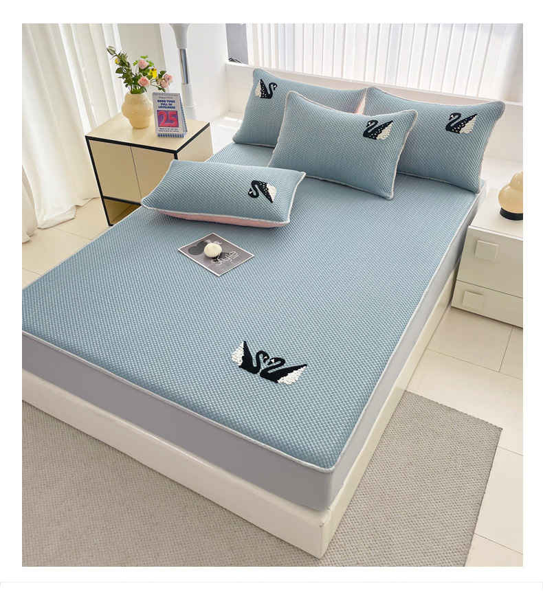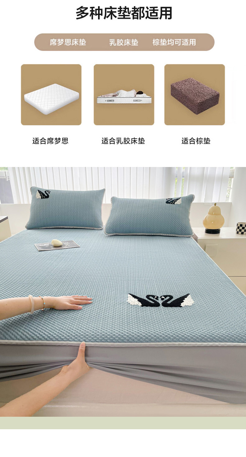 恋佳居2025新款A类乙伦PE凉豆豆毛巾绣床笠冰丝席(床笠款) 比翼双飞—蓝