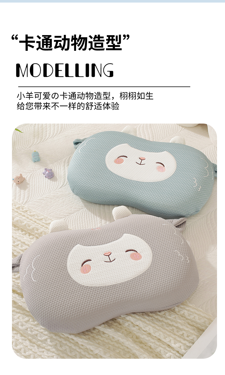 商品名称:蔻眠 可爱小羊-凉感丝凉豆豆猫肚记忆枕儿童枕芯学生护颈枕头 可爱小羊-紫色