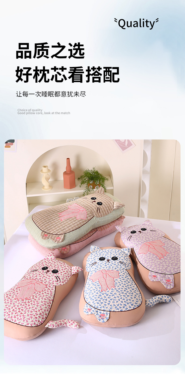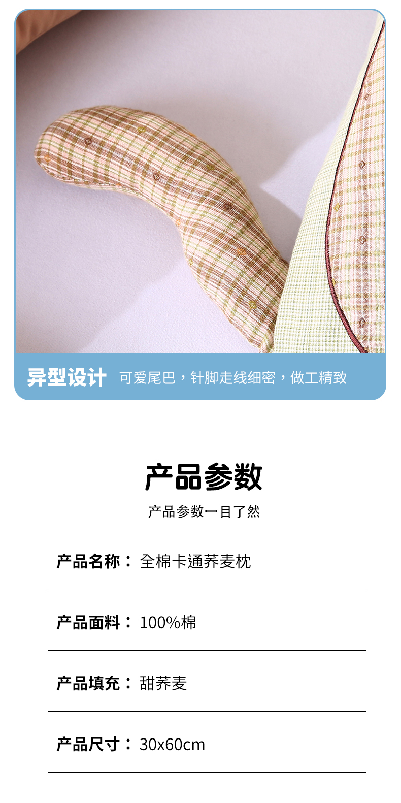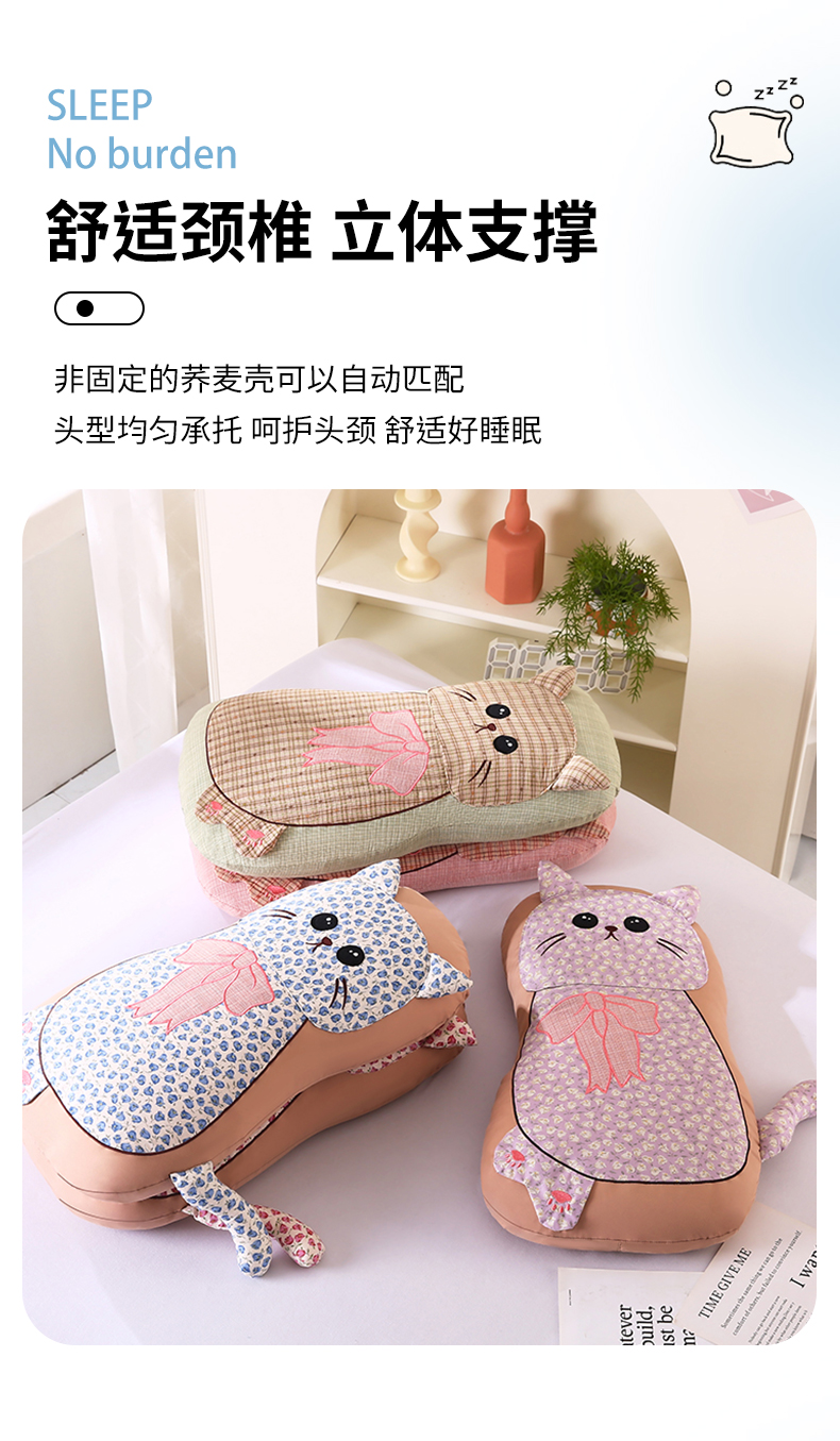 (总)蔻眠 2024新款可爱猫全棉儿童成人通用荞麦枕芯卡通枕头,粉色30x65cm,橘色30x65cm,咖色30x65cm,深蓝30x65cm,水绿30x65cm,天蓝30x65cm