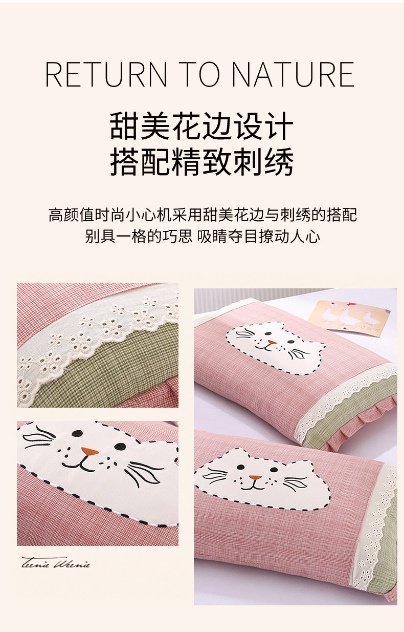 商品名称:蔻眠 洛可可猫-全棉卡通刺绣荞麦护颈枕芯儿童学生成人枕头 洛可可猫-粉色