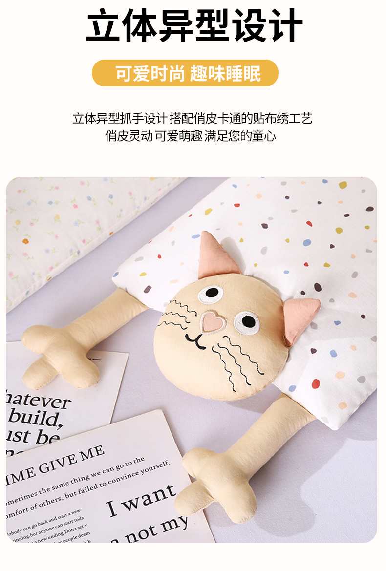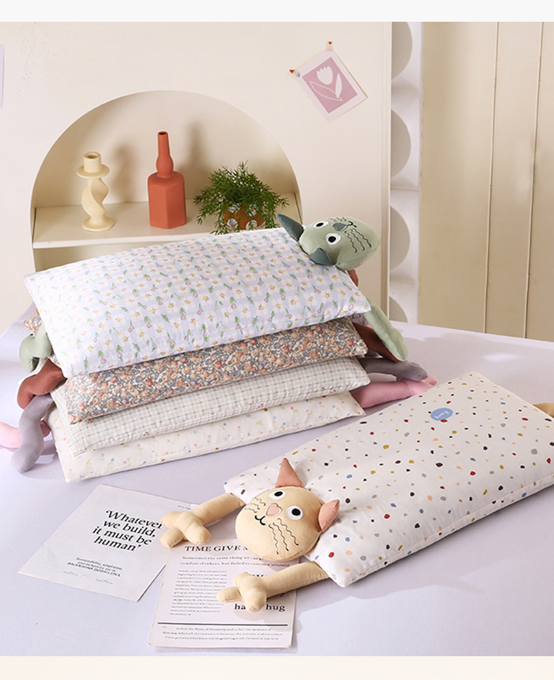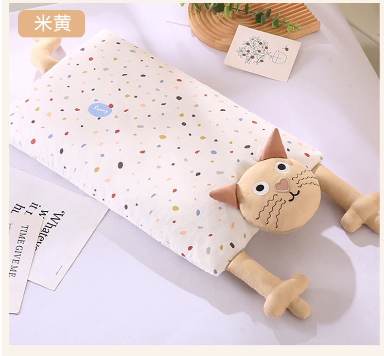商品名称:蔻眠 哇噻猫-全棉双层纱甜荞麦枕芯卡通儿童学生成人护颈枕 主图